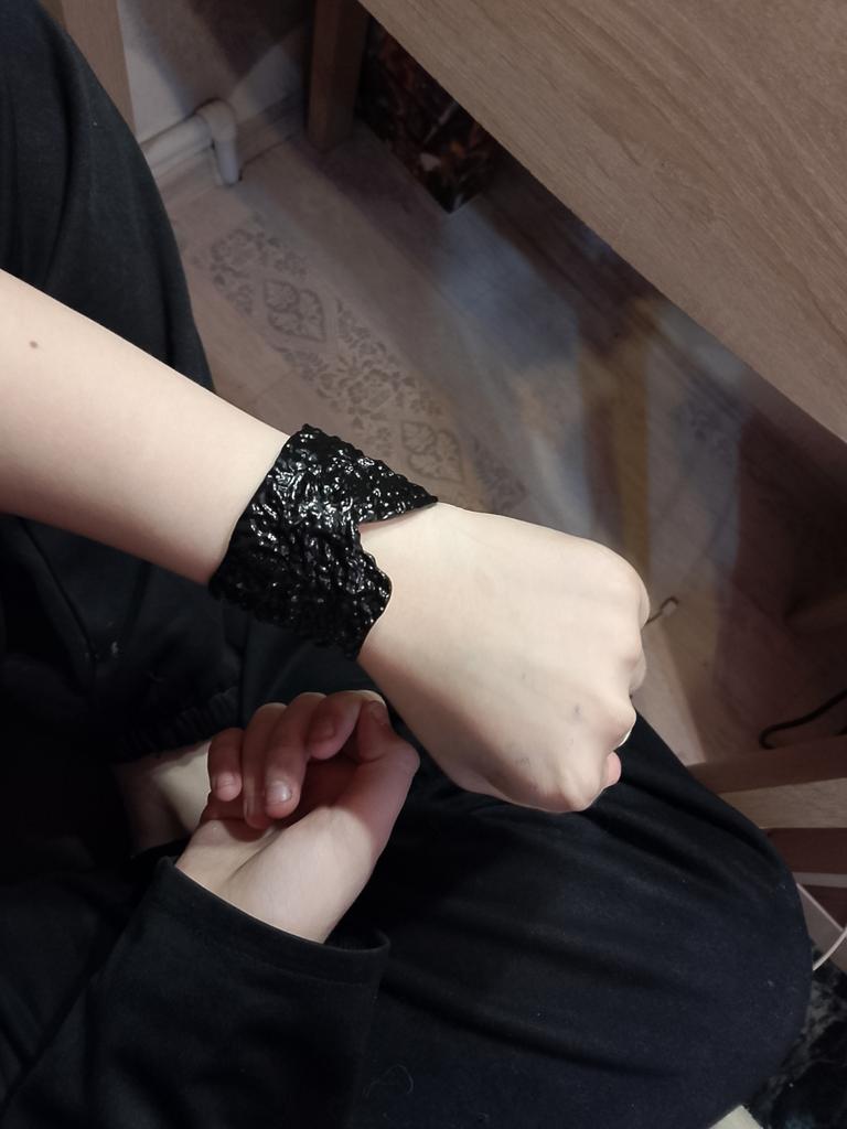 Смотрится красиво, но подходит на очень очень тоненькое запястье. На ребенке не сходится, то что большой промежуток не захвачен- слетает