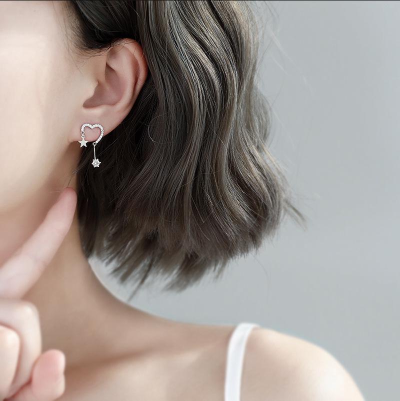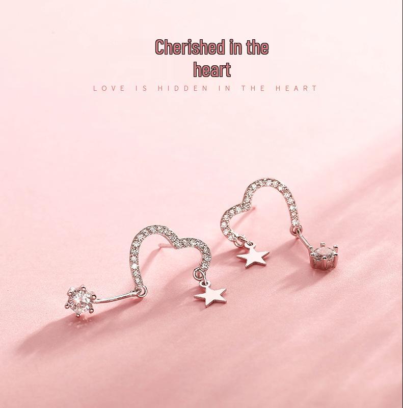 Модные серьги-пусеты в корейском стиле с блестящими сердечками и звездами: Женский простой, шикарный дизайн с ноткой индивидуальности