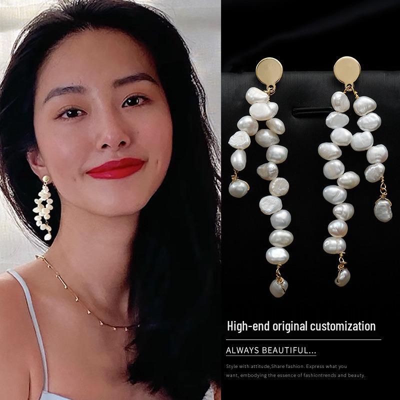 Серьги-кисточки из барочного жемчуга Ян Цайюй - Простой, нишевый дизайн для женщин