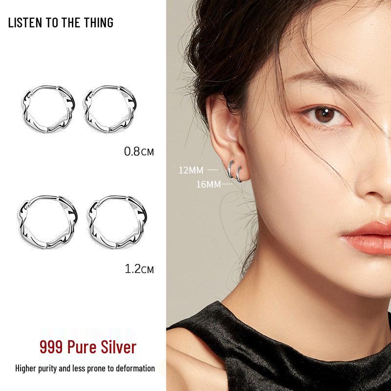 S999 Pure Silver Möbius Loop Twisted Hoop Earrings - Simple, Stylish Wavy Ear Cuffs