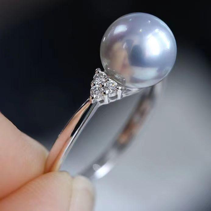Регулируемое минималистичное кольцо серебристо-серого цвета с голубым жемчугом и бриллиантом — купить товар онлайн с бесплатной доставкой по всему миру!