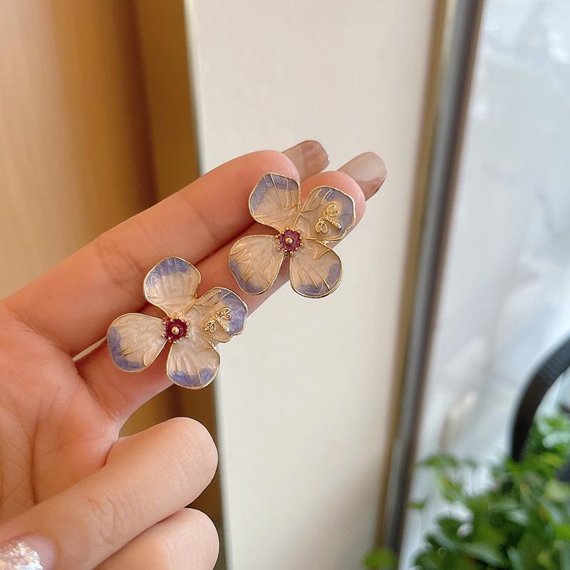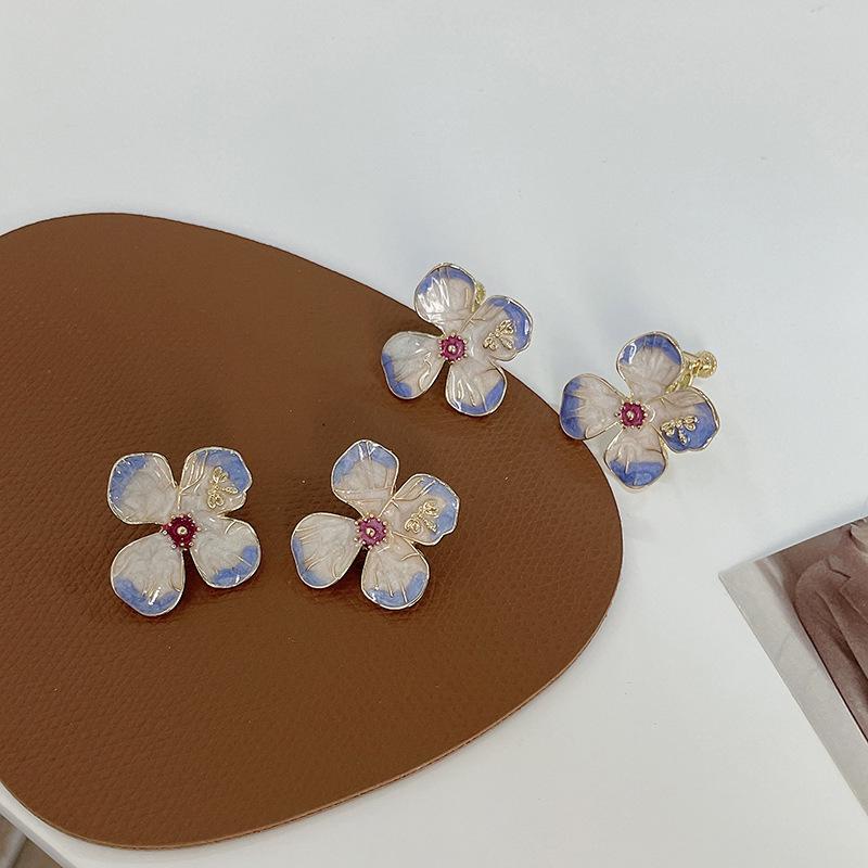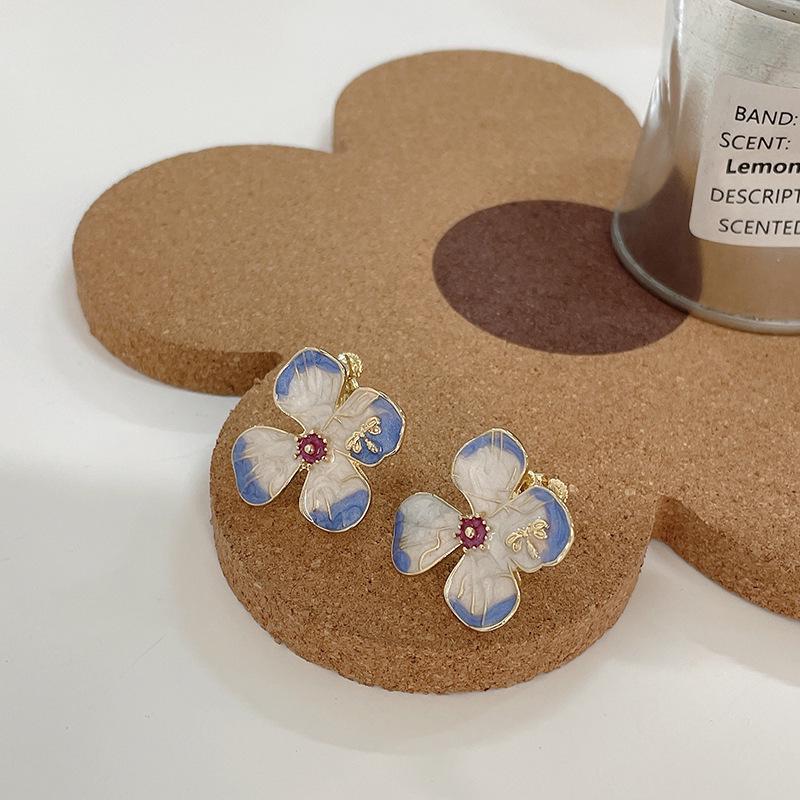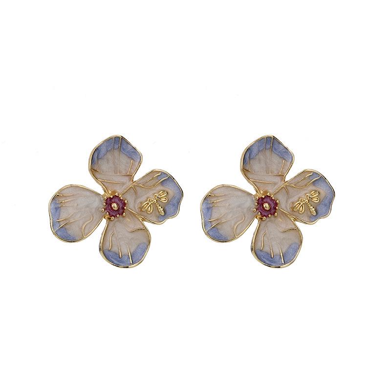 Серьги-пусеты из серебра 925 пробы в стиле ретро с синими цветами для женщин