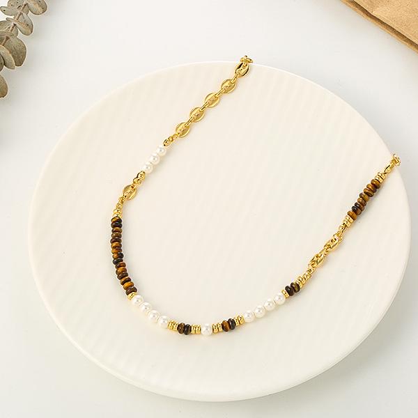 Ожерелье на ключицу из тигрового глаза и жемчуга - Роскошное, универсальное, винтажное колье для лета