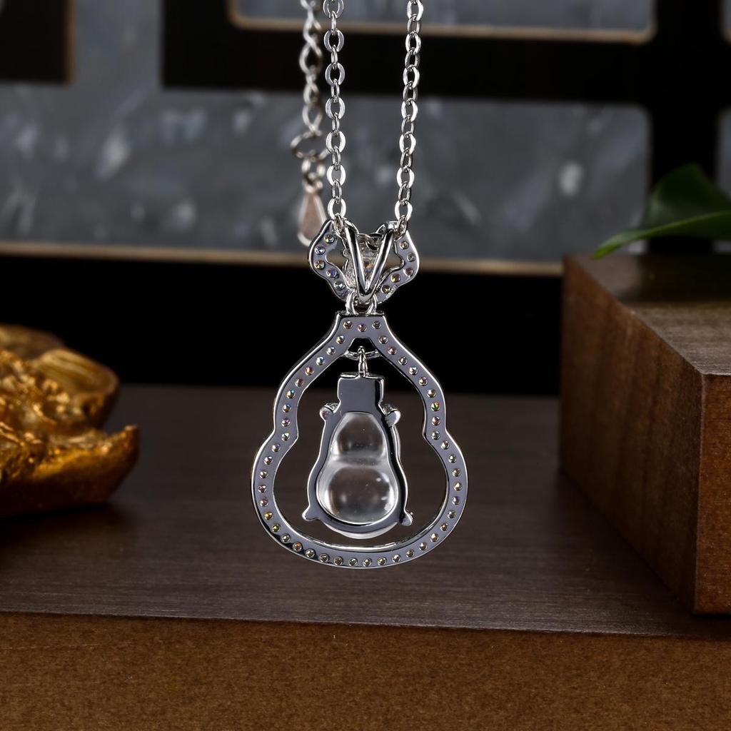 Подвеска-тыква из бирманского голубого водного нефрита с серебром S925 - в китайском стиле для женщин
