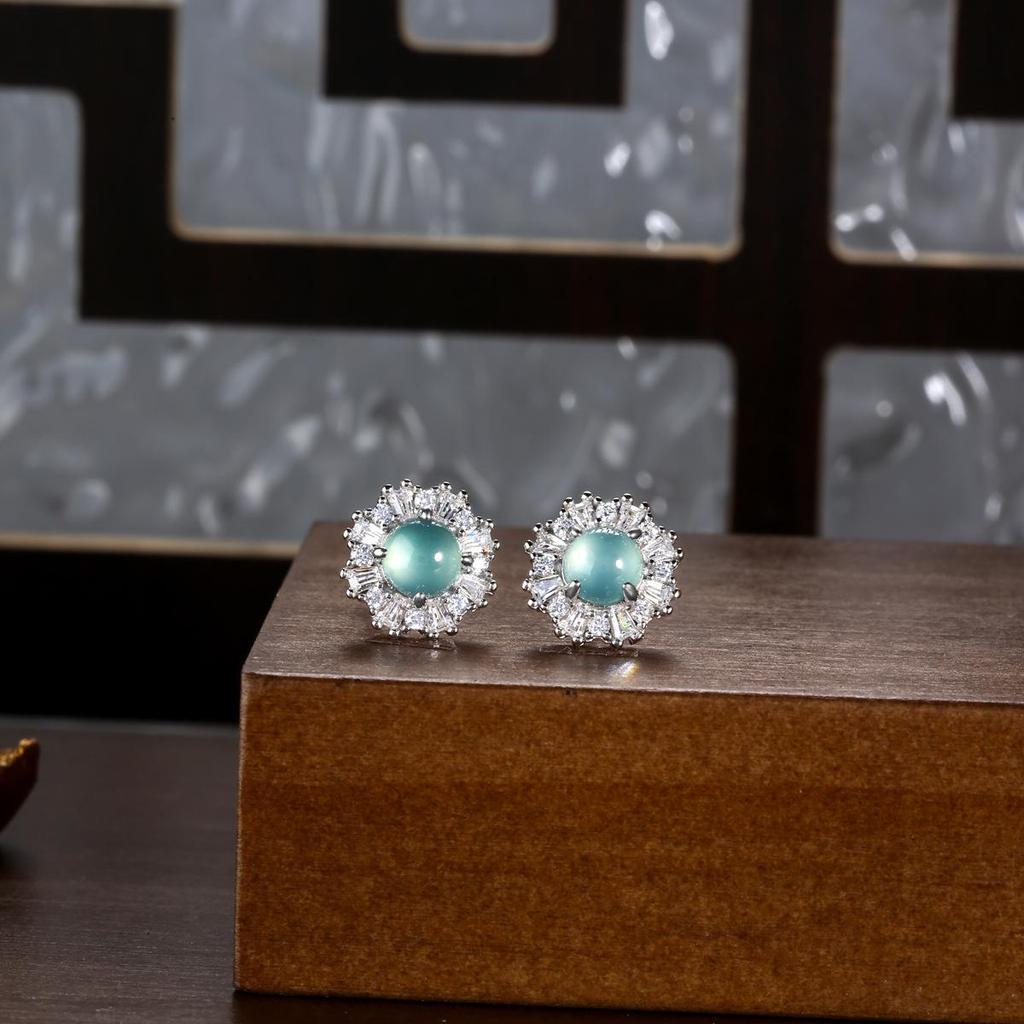 Серьги-пусеты из стерлингового серебра 925 пробы в виде подсолнухов с натуральным нефритом Вэлянского голубого водного цвета — купить товар онлайн с бесплатной доставкой до всему миру!