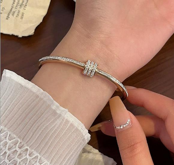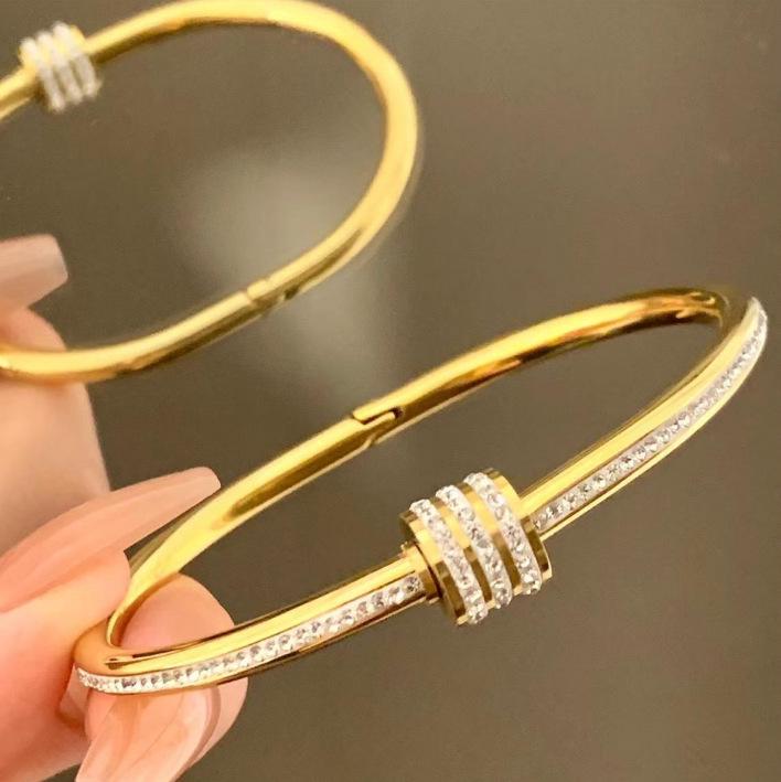 Элегантный браслет из титановой стали с инкрустацией цирконами для женщин - Роскошный подарок для девушки или лучшей подруги