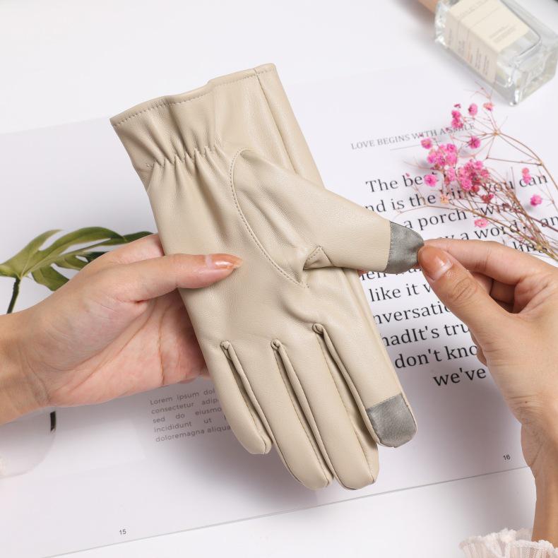 Женские сенсорные перчатки из ПУ кожи: Защита от холода, ветронепроницаемость, флисовая подкладка, идеально для вождения осенью/зимой.