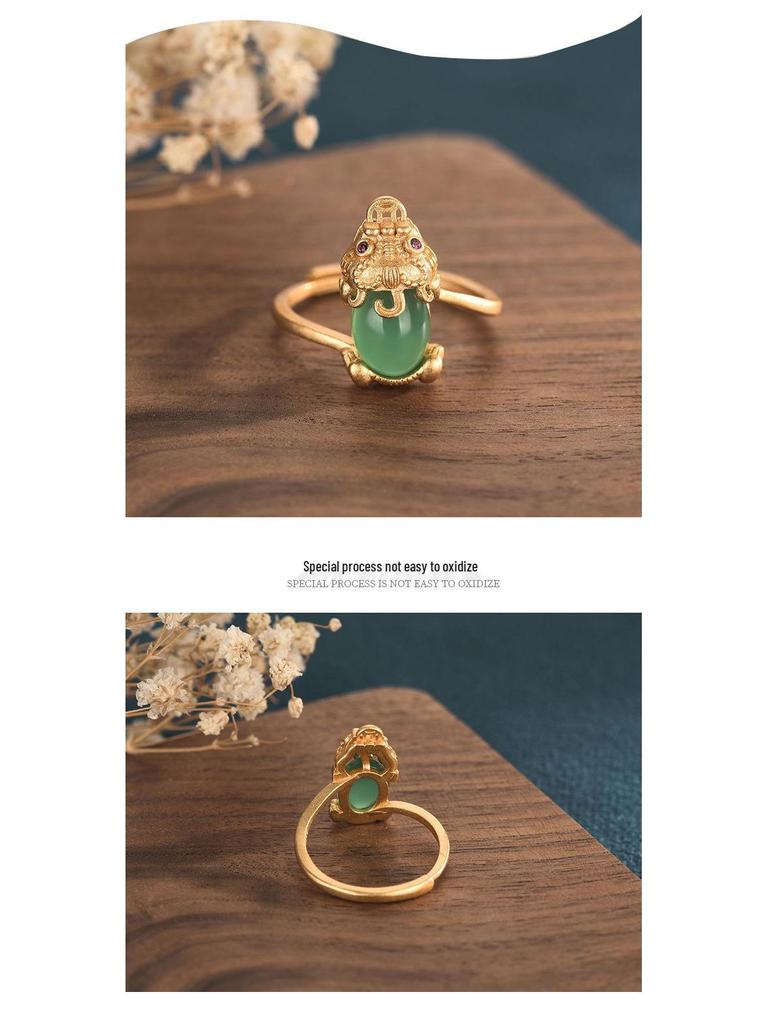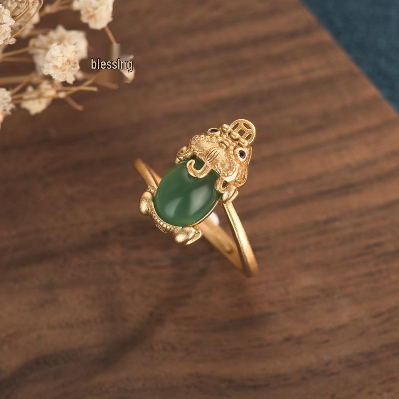 Кольцо в этническом стиле из латуни с золотым покрытием и халцедоном