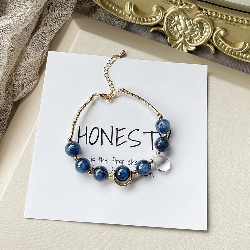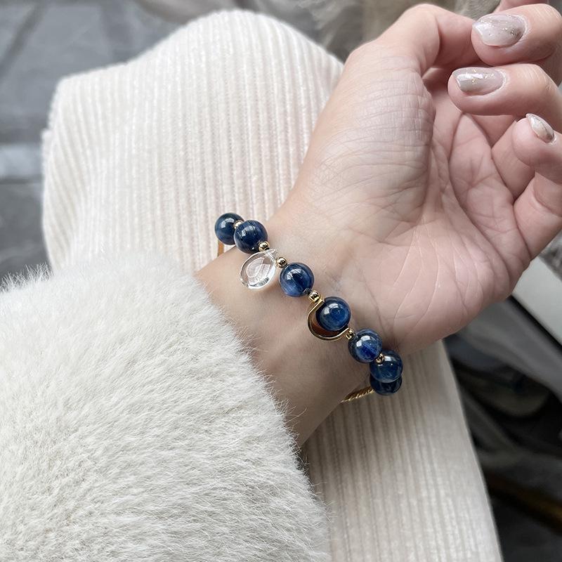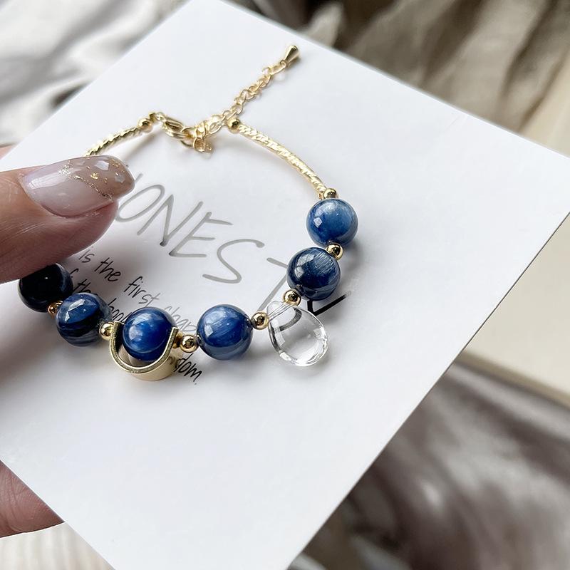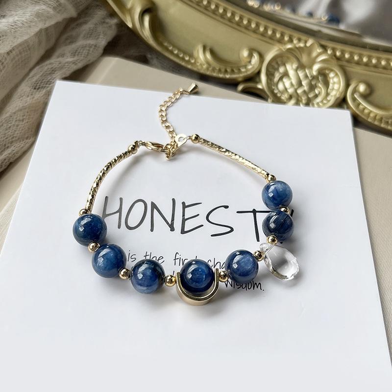 Регулируемый браслет с кристаллом кианита для женщин – Натуральный синий бисерный подарок