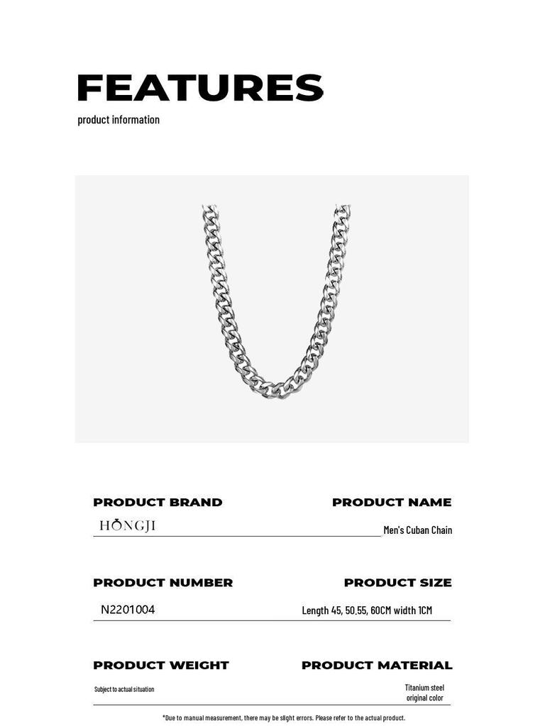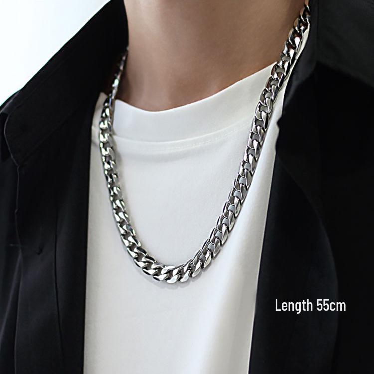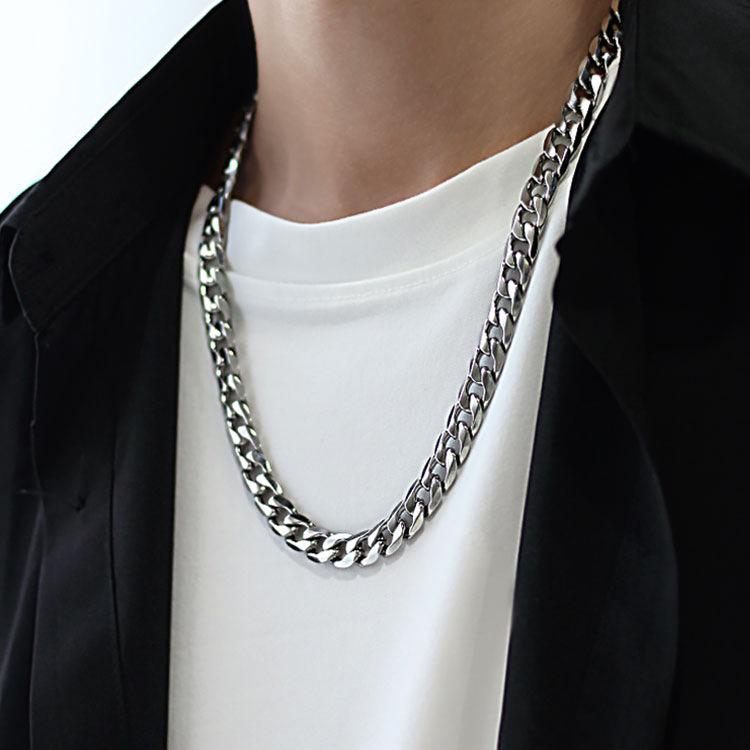 Мужская трендовая кубинская цепочка - Титановая сталь, Не выцветает, Толстая железная цепь, Хип-хоп стиль, Европейская/Американская мода.