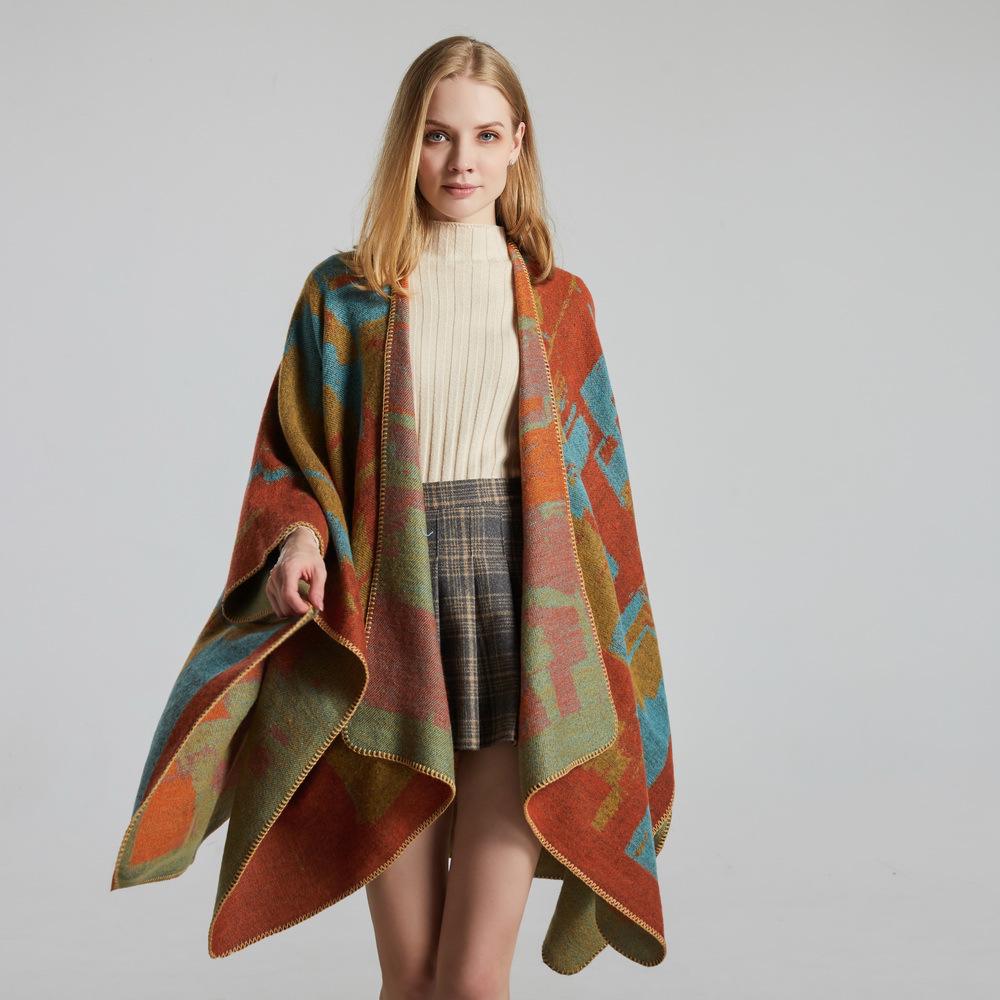Женская модная жаккардовая шаль из имитации кашемира - Утолщенная, теплая, большая накидка-шарф