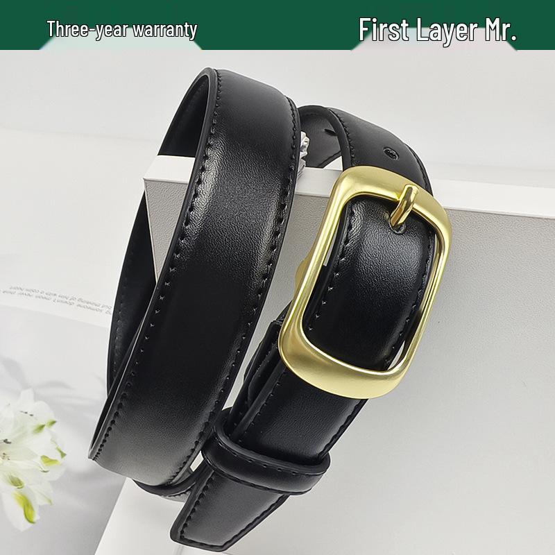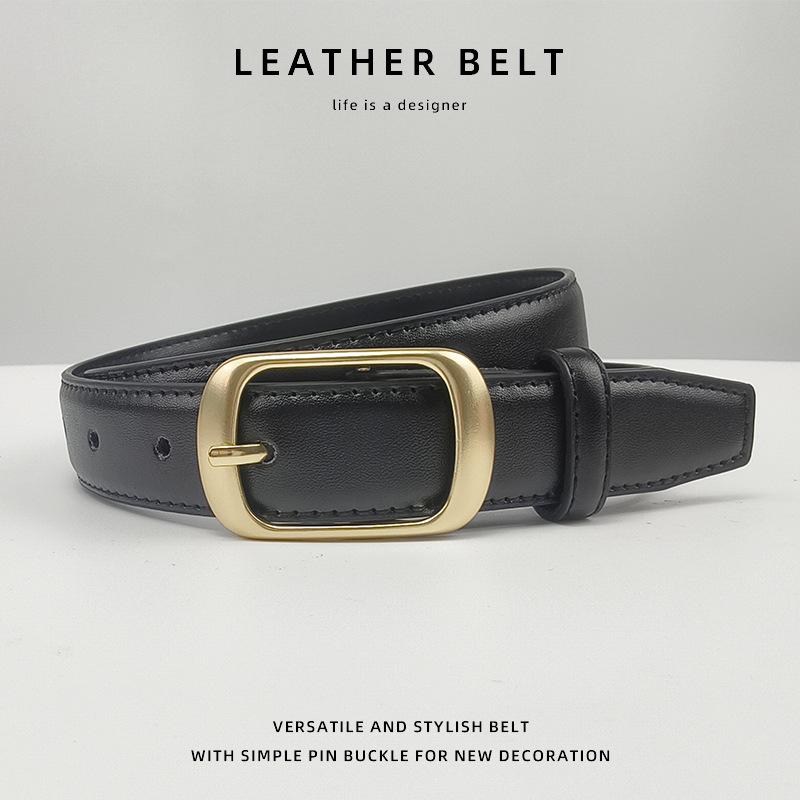 2024 Женский Модный Ремень из Натуральной Кожи Черный: Универсальный стиль для джинсов
