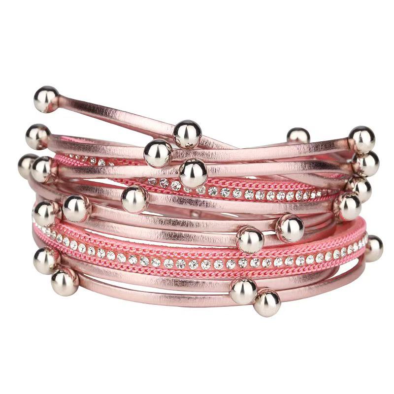 Богемский многорядный браслет из бисера и кожи с магнитной застежкой