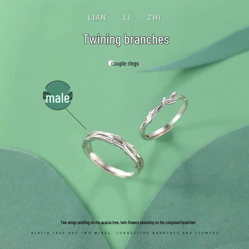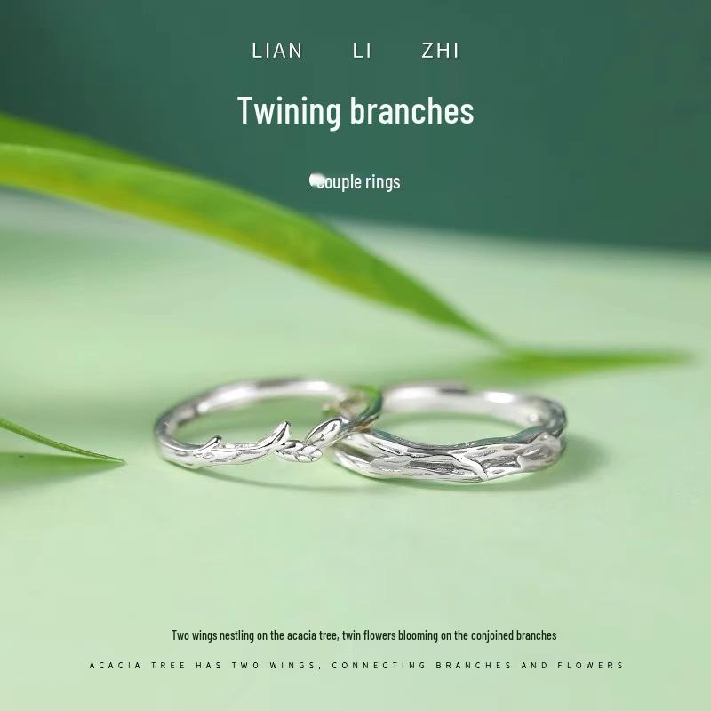 Кольца для пары «Переплетенные ветви»: Модные креативные кольца-веточки, минималистичный дизайн с цветком-шипом для мужчин и женщин.