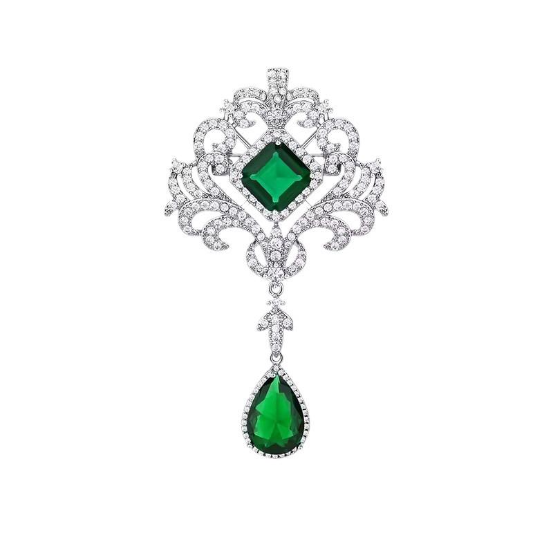 Роскошная брошь-булавка в стиле ретро, с изумрудным кристаллом, в придворном стиле, для женщин