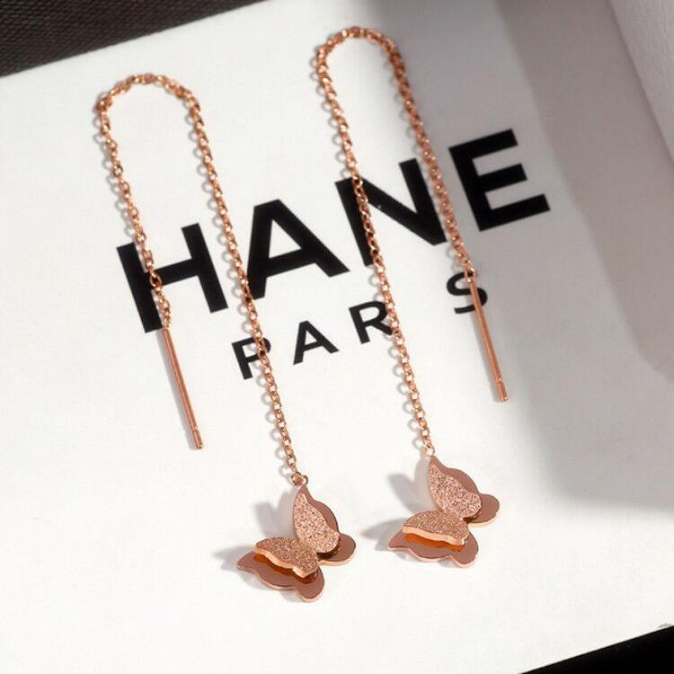 Серьги-продевки 'Бабочка' из 18-каратного золота - Титановая сталь, Не тускнеющие, Простой дизайн, Универсальные и легкие для лета