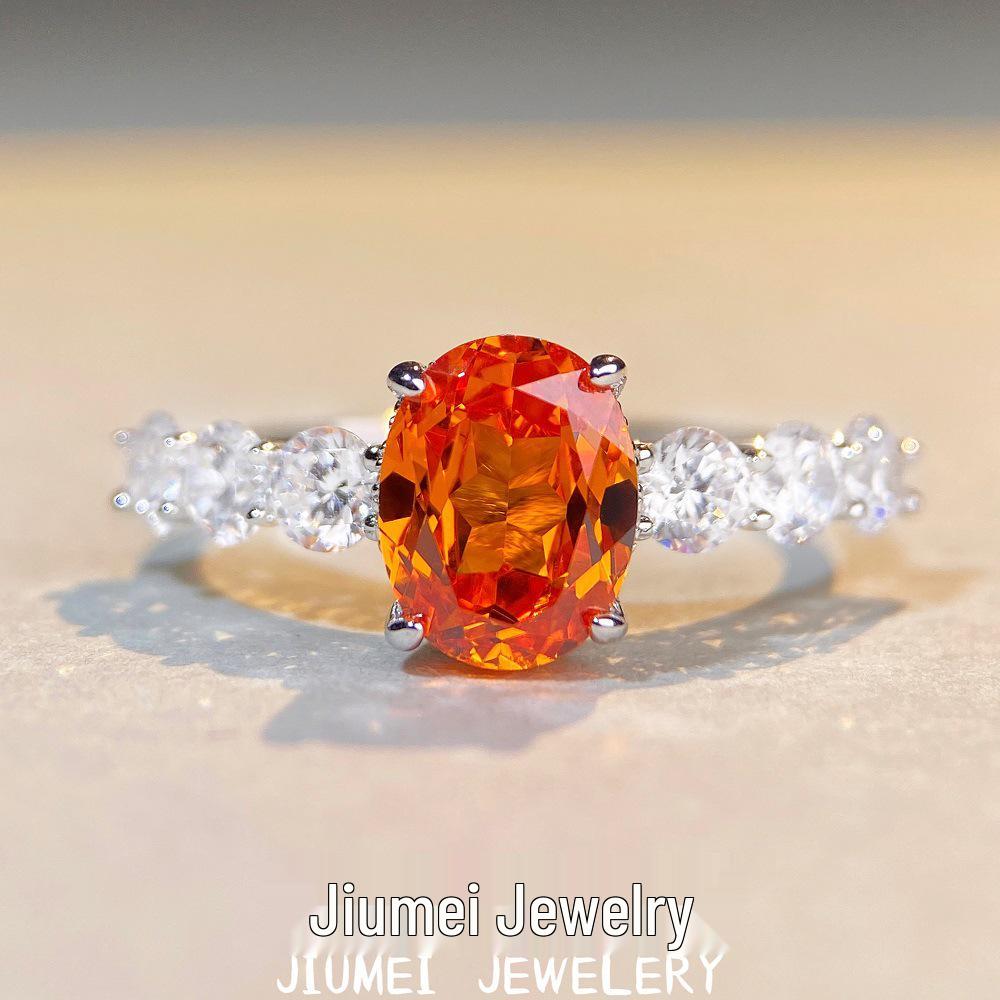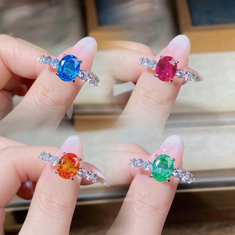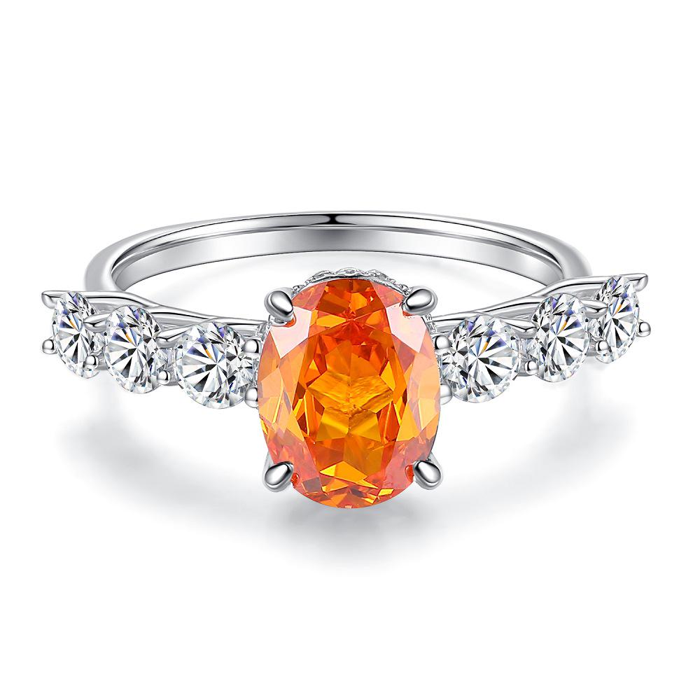 Женское кольцо из стерлингового серебра S925 - Овальный бриллиант 3 карата цвета Фанта, Популярный стиль для женщин.