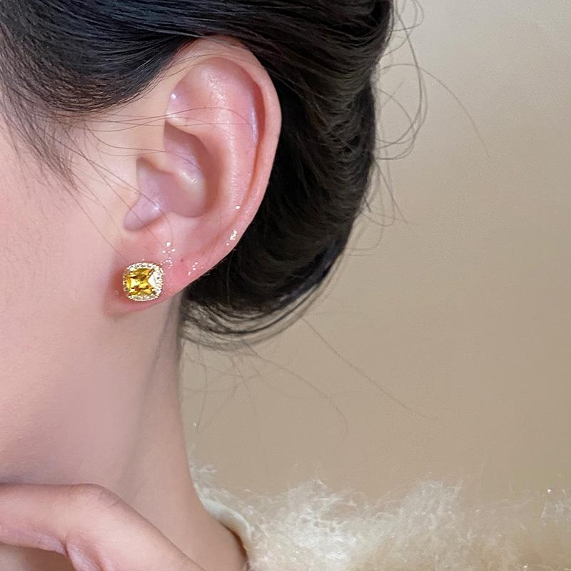 2024 Серьги-пусеты квадратной формы с желтыми бриллиантами из серебра 925 пробы - Новая легкая роскошь, женские украшения высокого класса
