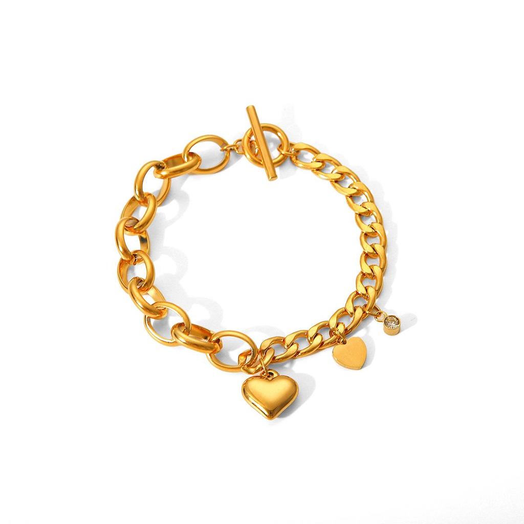 Подвеска-сердце из циркона с позолотой 18 карат, браслет с овальной кубинской цепочкой