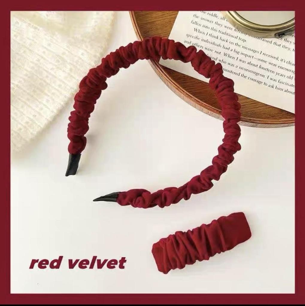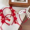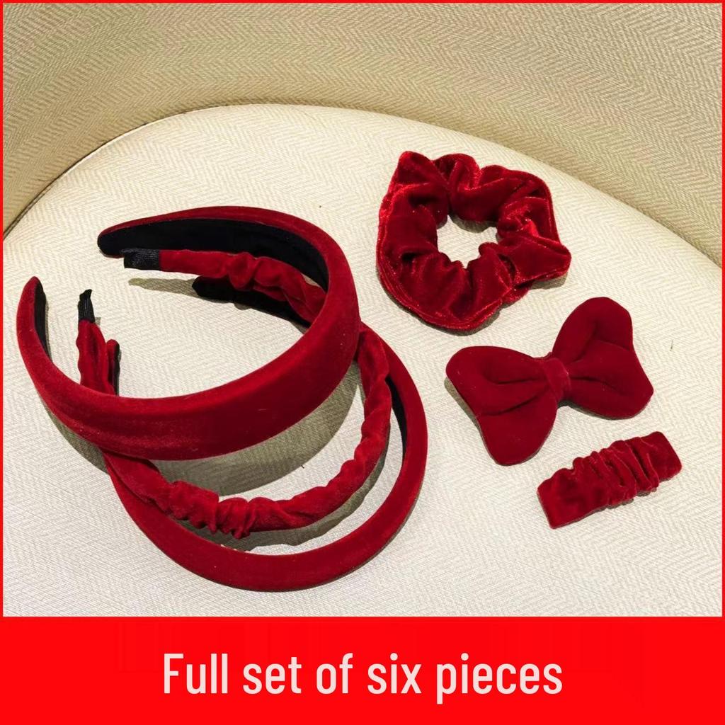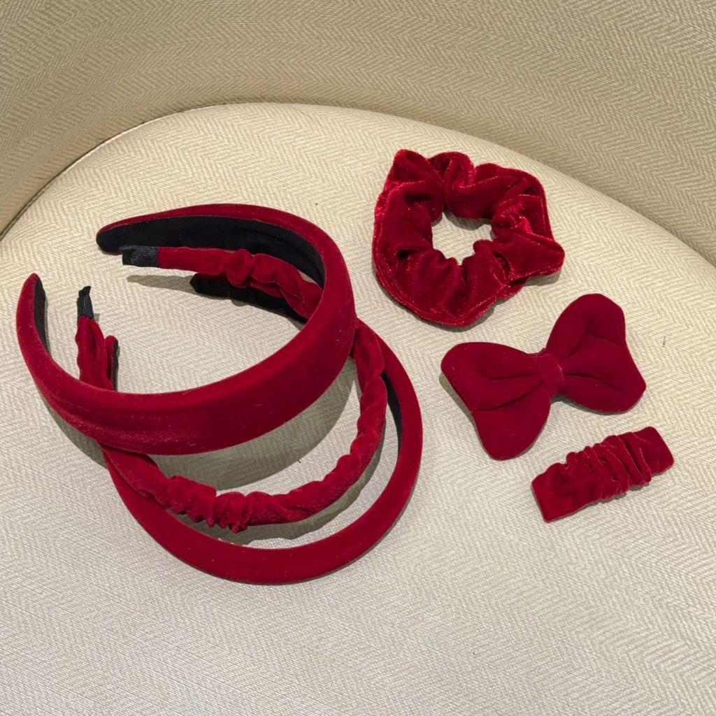 Новогодний красный ободок-скранчи принцессы, резинка для волос с заколкой-челкой