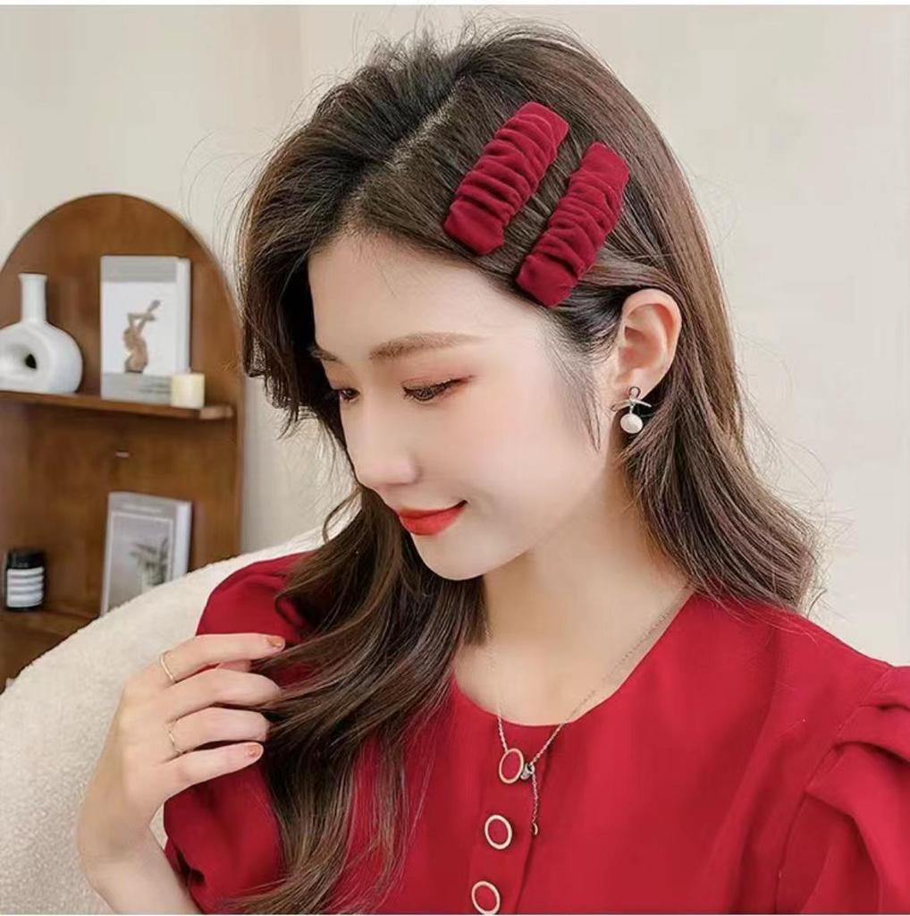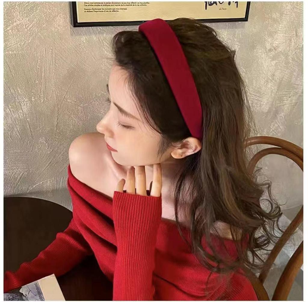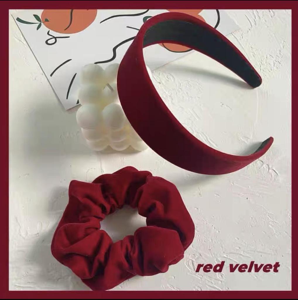 Новогодний красный ободок-скранчи принцессы, резинка для волос с заколкой-челкой
