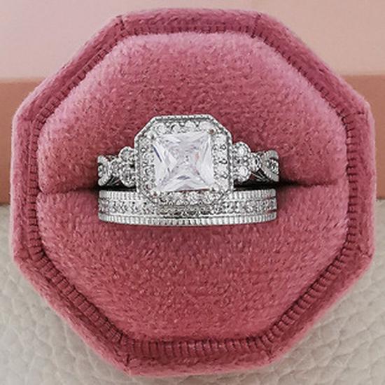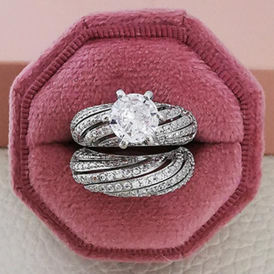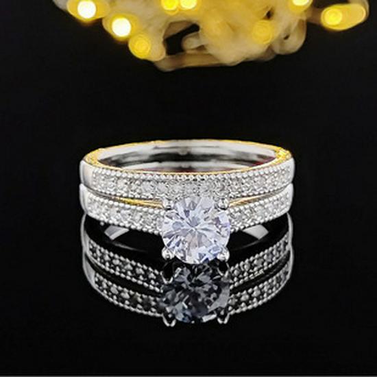 Креативный полый набор обручальных и свадебных колец с инкрустацией бриллиантами - Европейский и американский стиль (r5505)