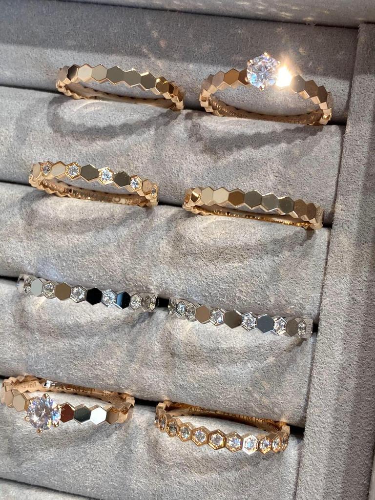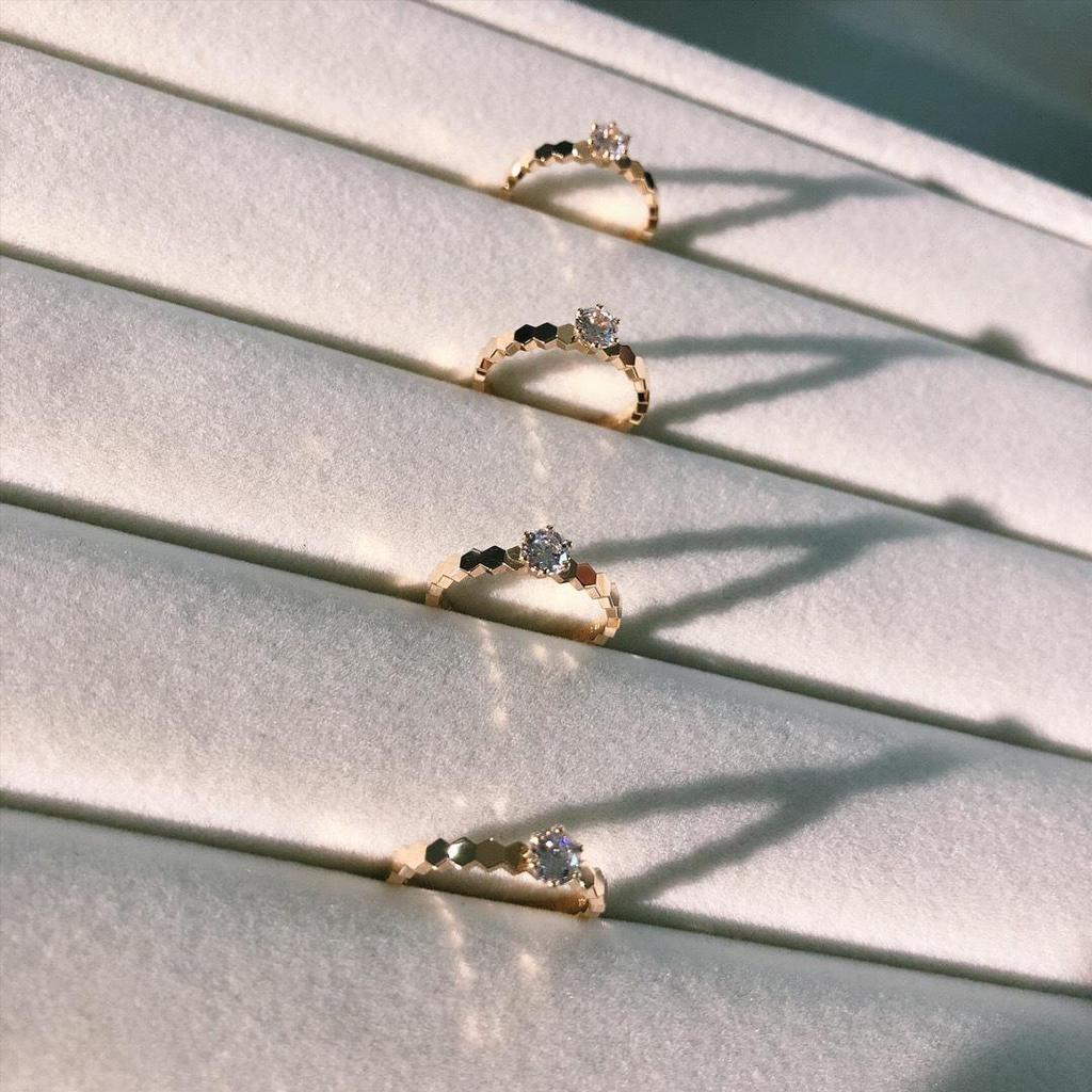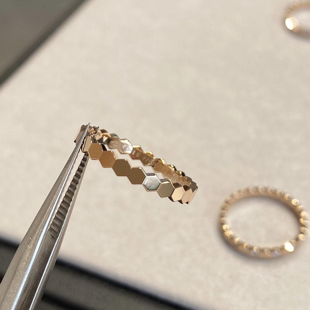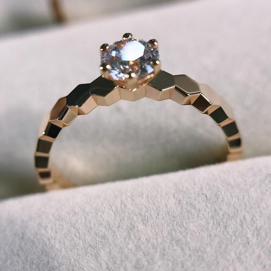 Кольцо из розового золота с бриллиантами в виде пчелиных сот - Штабелируемое, Дизайн с полными и половинными бриллиантами для женщин