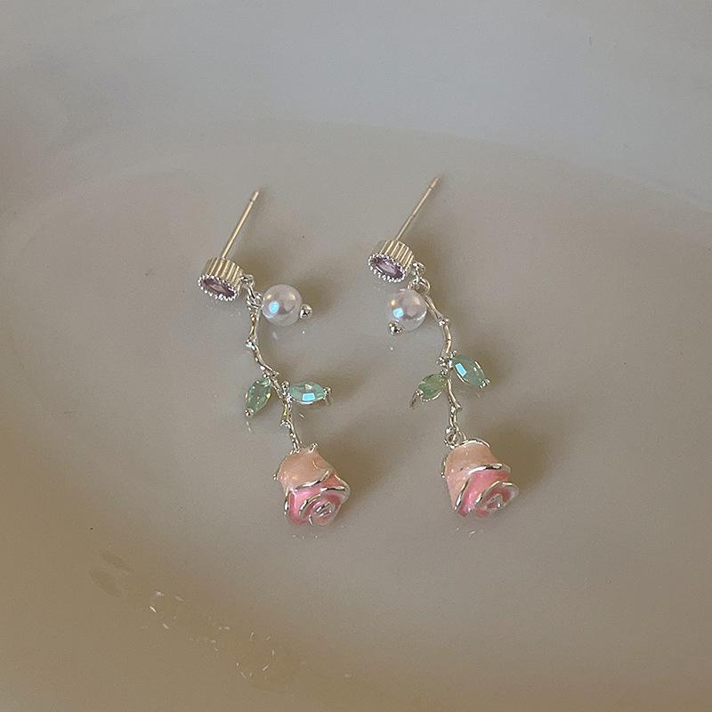 Элегантные серьги-пусеты с кисточками из розового циркона в виде розы для женщин - Высококлассный универсальный дизайн — купить товар онлайн с бесплатной доставкой по всему миру!