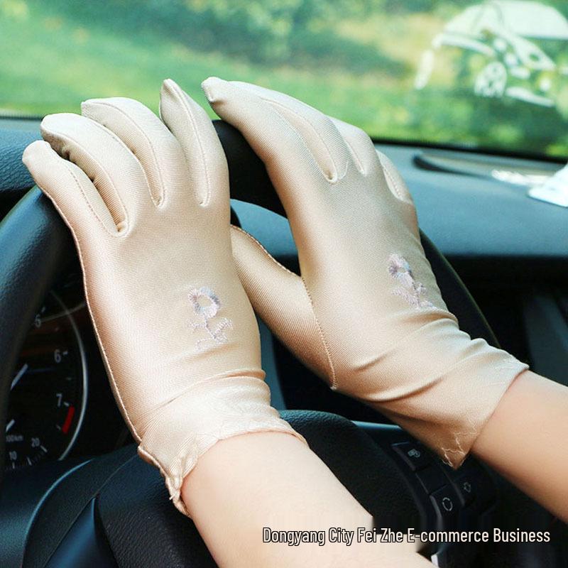 Женские весенне-летние вышитые солнцезащитные перчатки - Высокоэластичные перчатки для езды и вождения