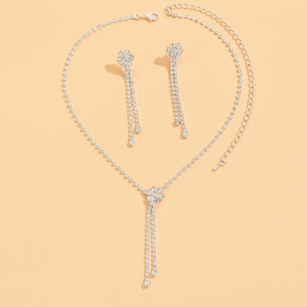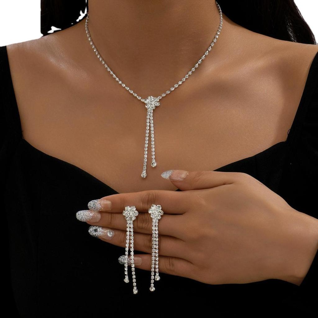 Роскошный Свадебный Вечерний Женский Набор Ожерелье и Серьги-гвоздики с Водными Бриллиантами