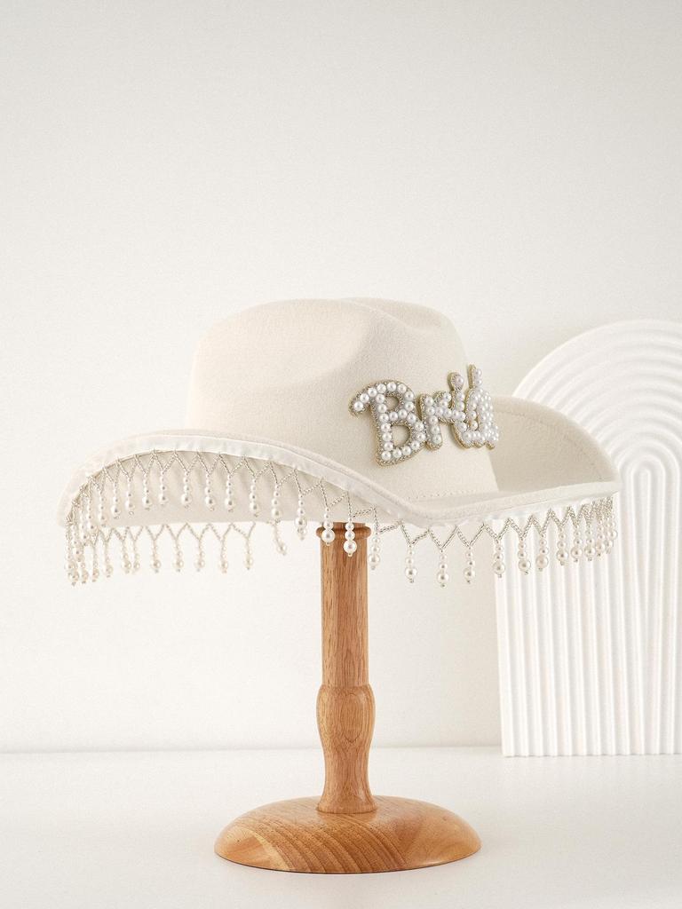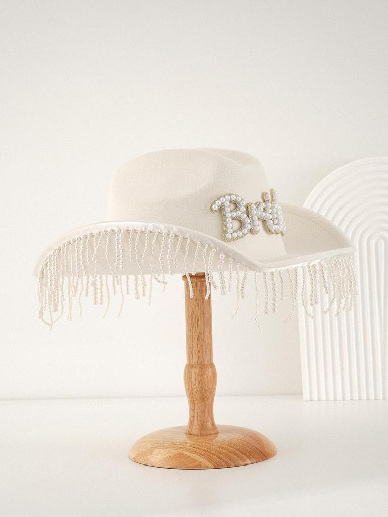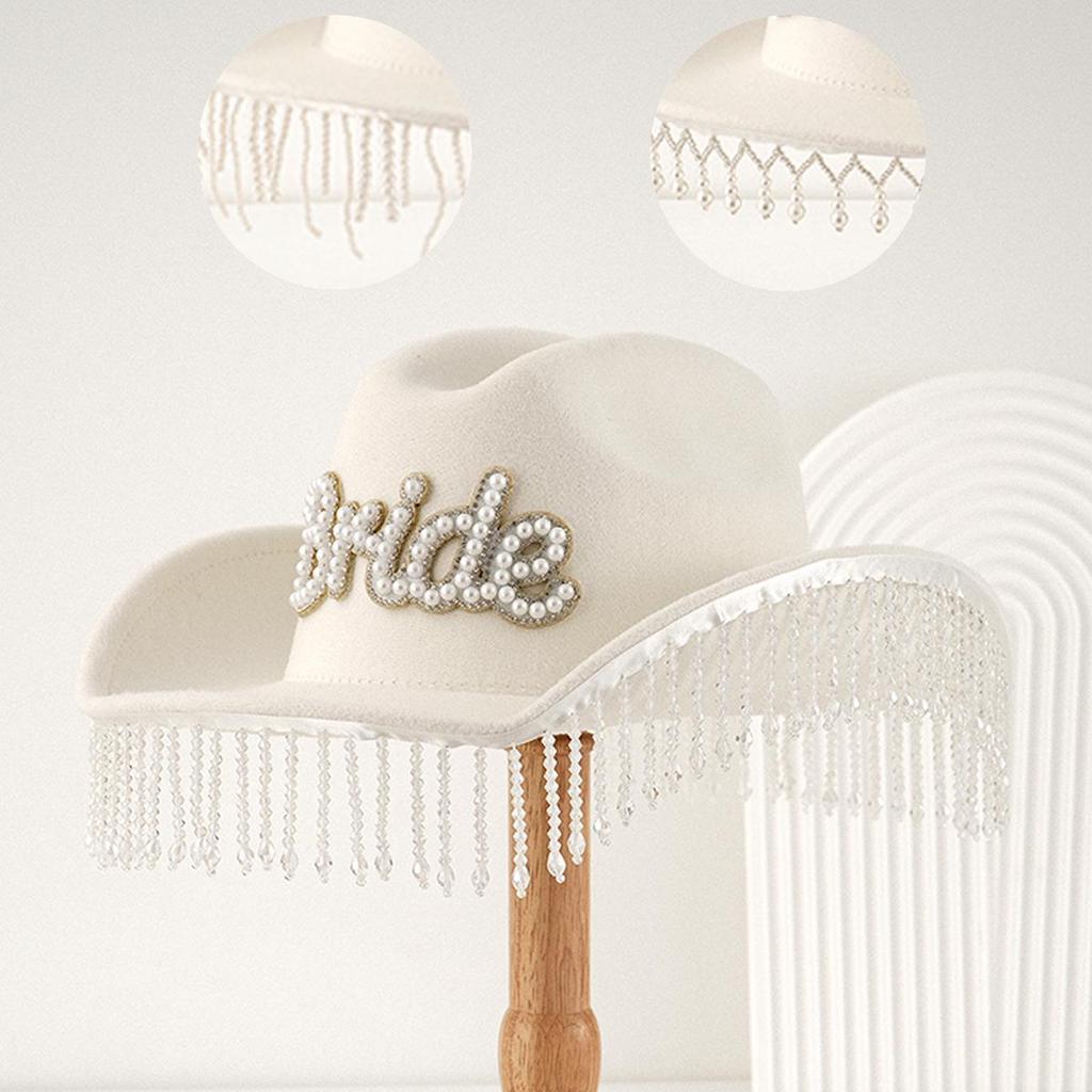 Женская джинсовая свадебная шляпа с кристальной кисточкой, жемчугом и бриллиантами