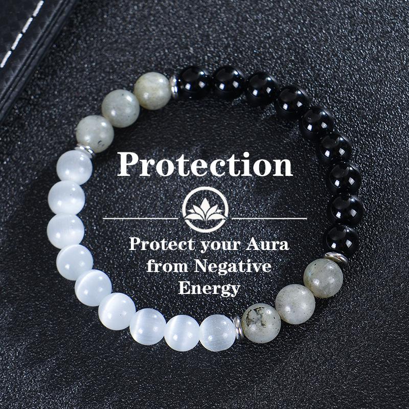 Браслет из лунного камня «кошачий глаз» 8 мм и обсидиана - Женские украшения для йоги