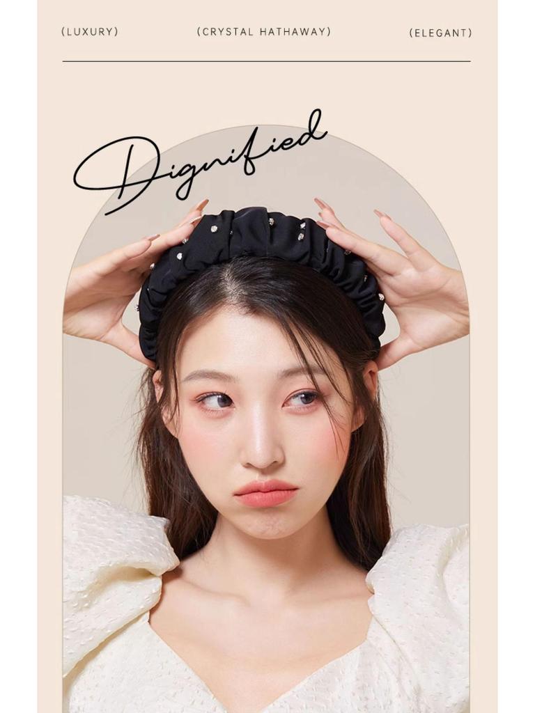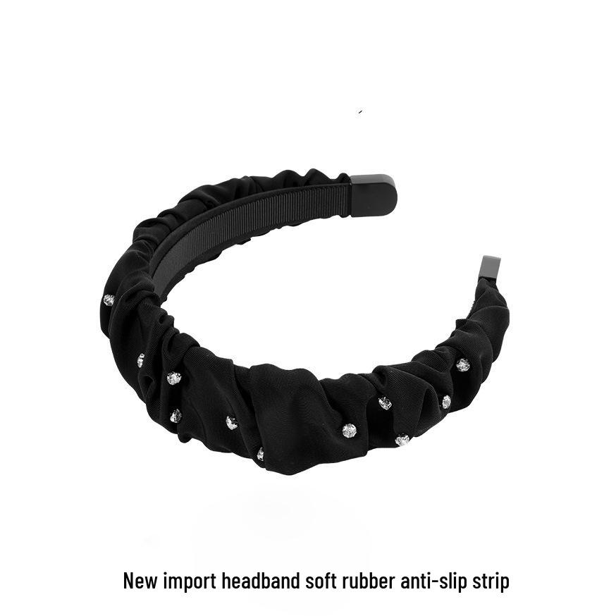 Хэтэуэй Кристальная Плиссированная Бриллиантовая Повязка на Голову: Черный широкополый аксессуар премиум-класса для стройнящего эффекта