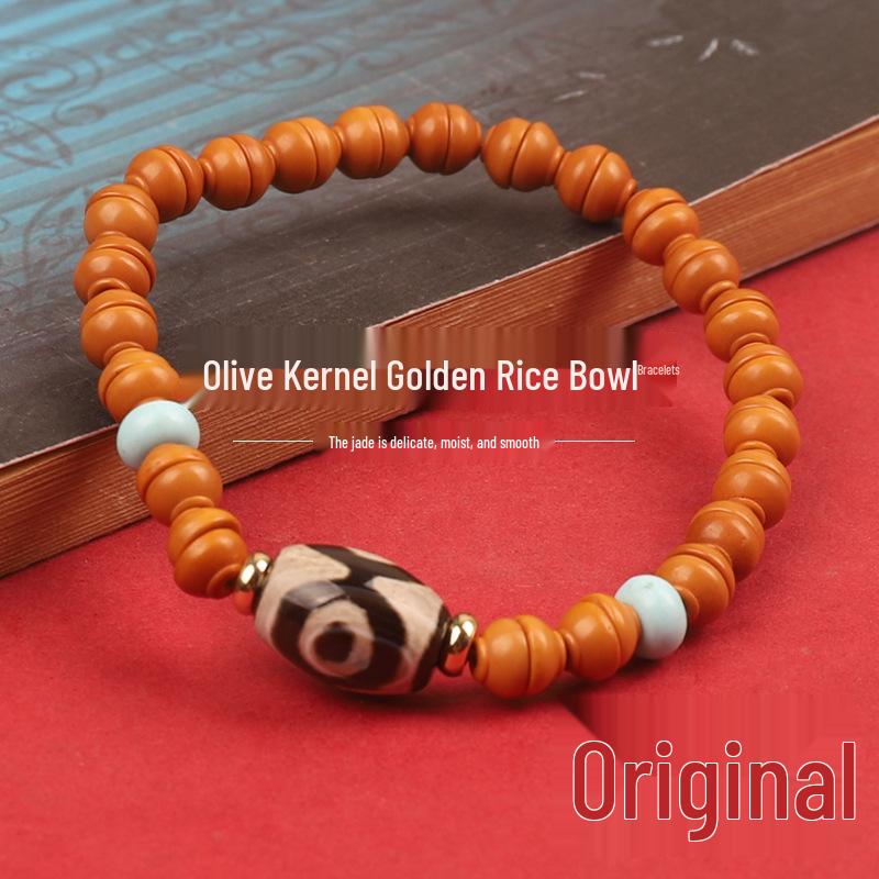 Браслет ручной работы из косточек оливы Вэньвань Дзи - Одинарный ряд Унисекс Буддийский дизайн