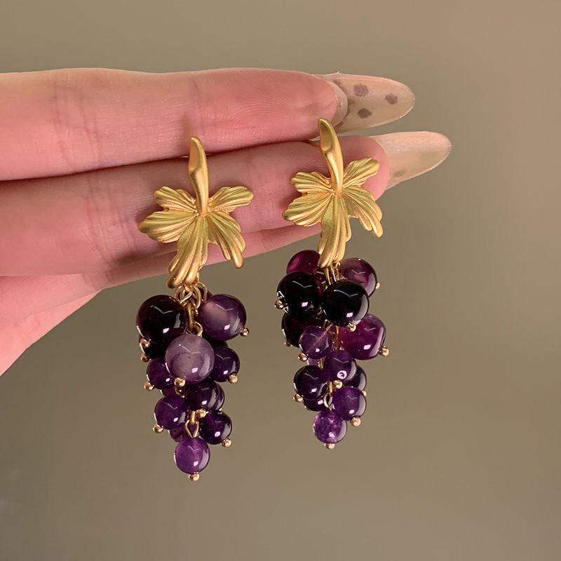 Винтажные длинные серьги из серебра 925 пробы в виде грозди фиолетового винограда - Новый ретро-дизайн 2025