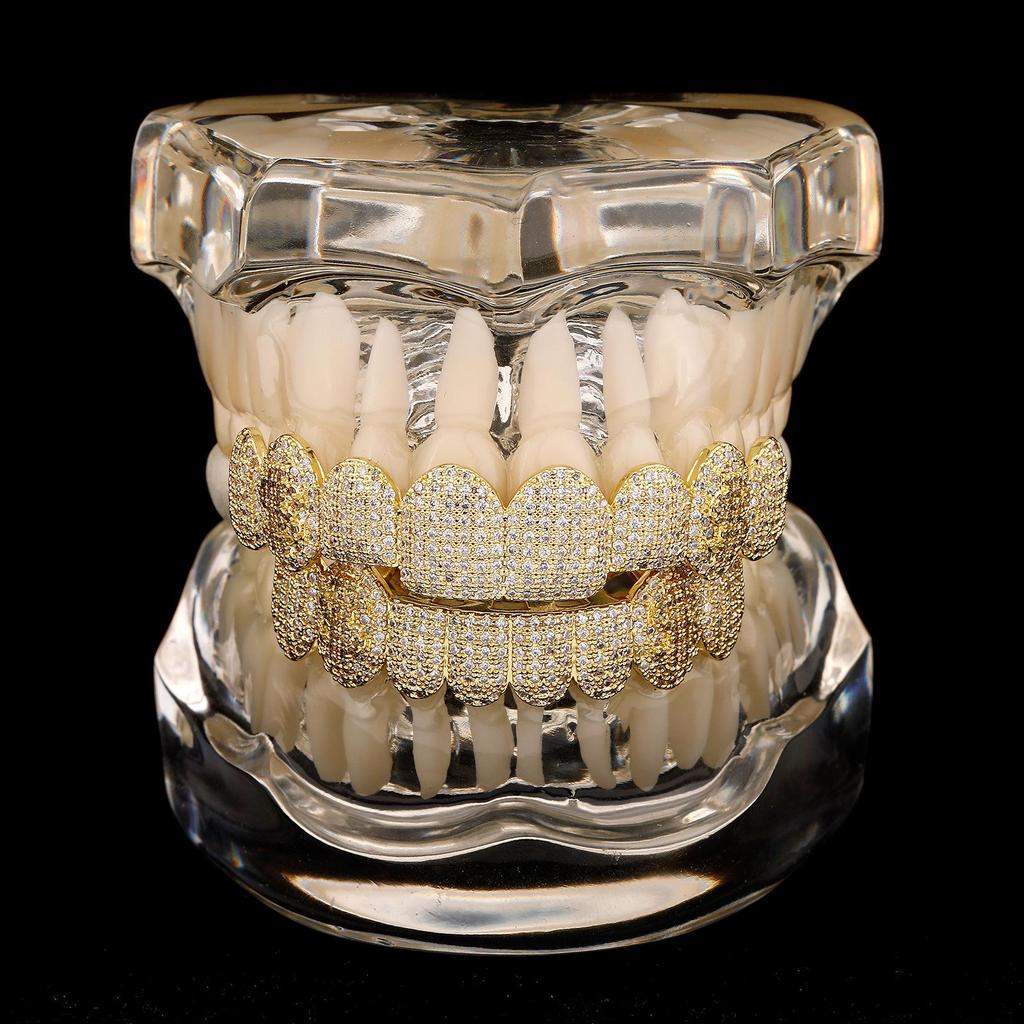 Гриллзы для зубов из золота с микропаве из цирконов, 8 зубов – Крутой хип-хоп аксессуар для мужчин-рэперов