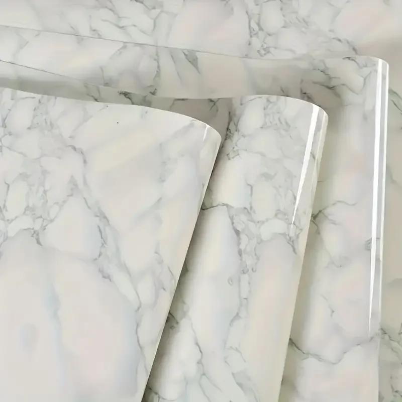 Виниловые обои с эффектом мрамора - Самоклеящиеся, Съемные, Глянцевая отделка, Текстурный узор, Свободная стыковка, Обои-самоклейка для кухонной столешницы, полки и отделки мебели - Легкая установка, Прочные и Водонепроницаемые