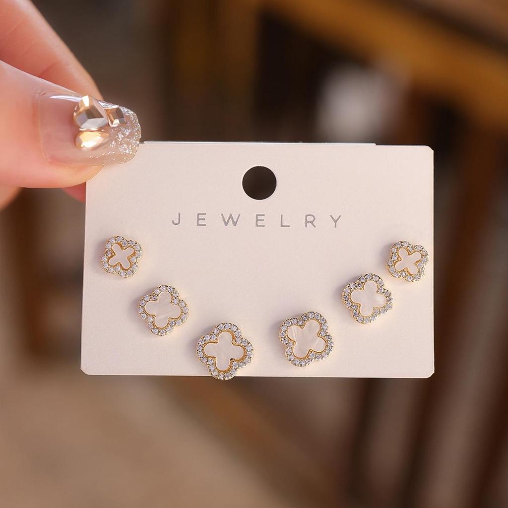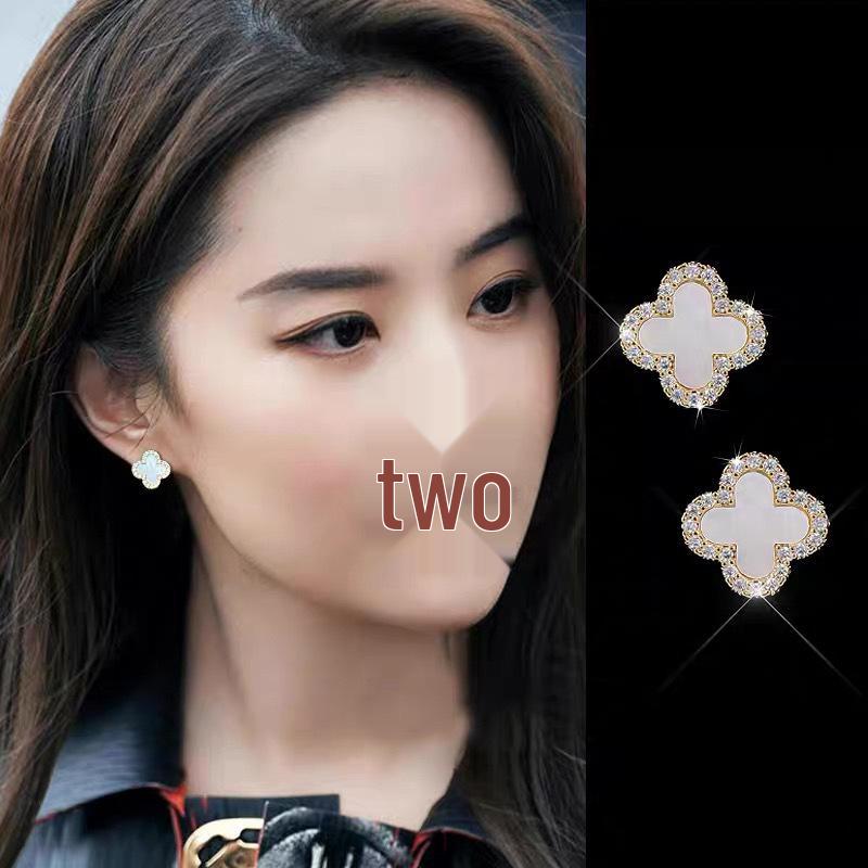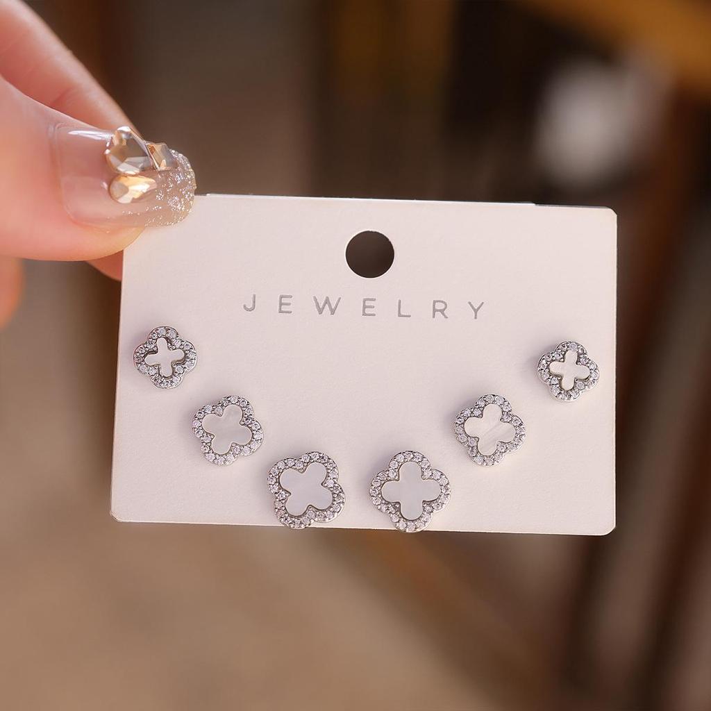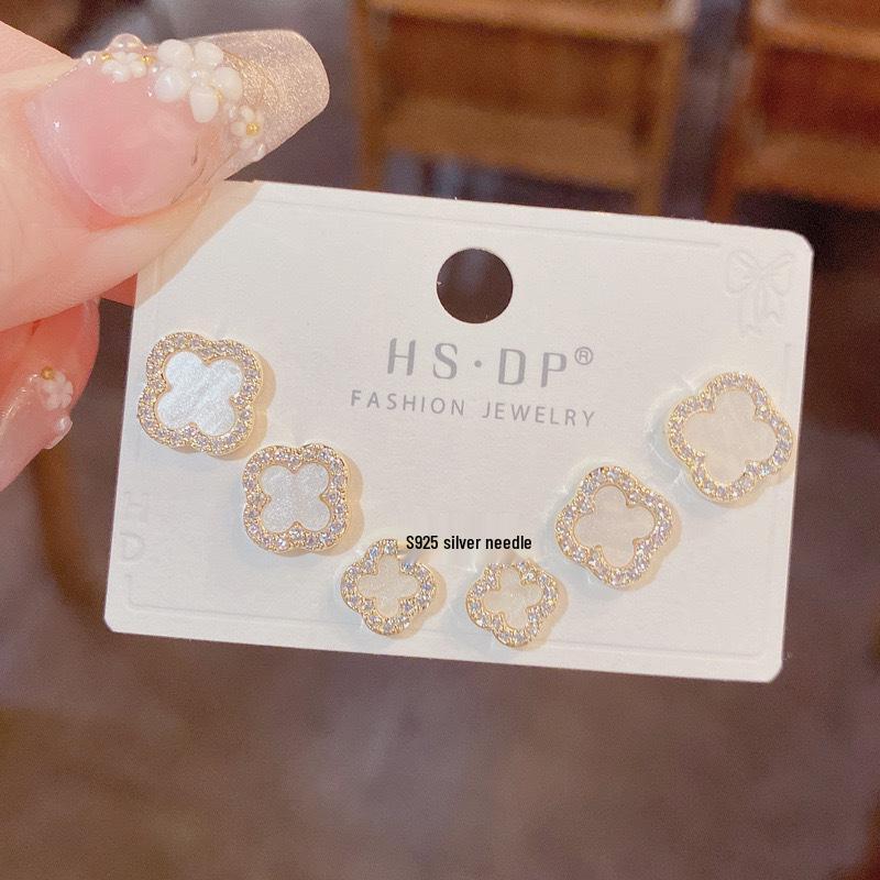 Серьги-пусеты «Четырехлистный клевер» с перламутром и иглой из серебра 925 пробы - Изысканный корейский стиль