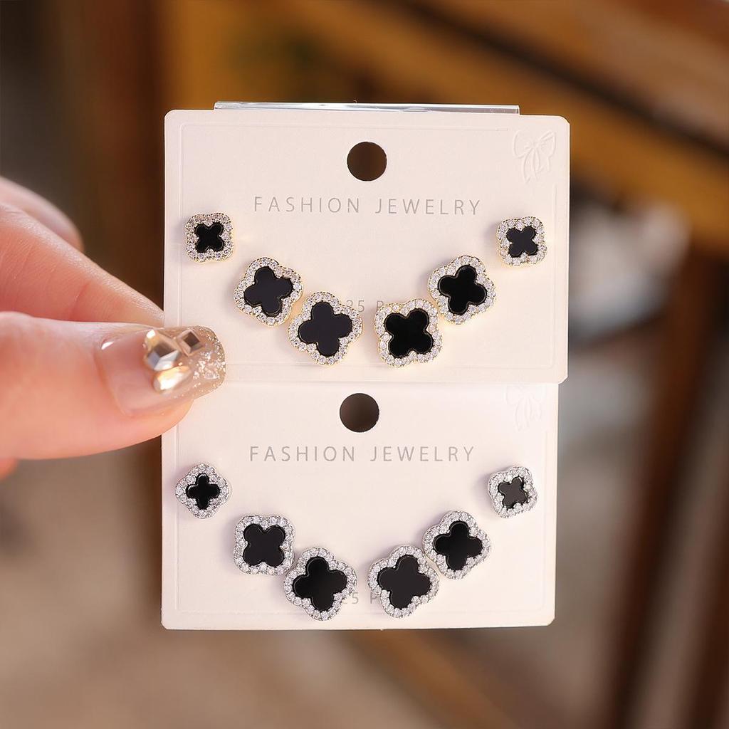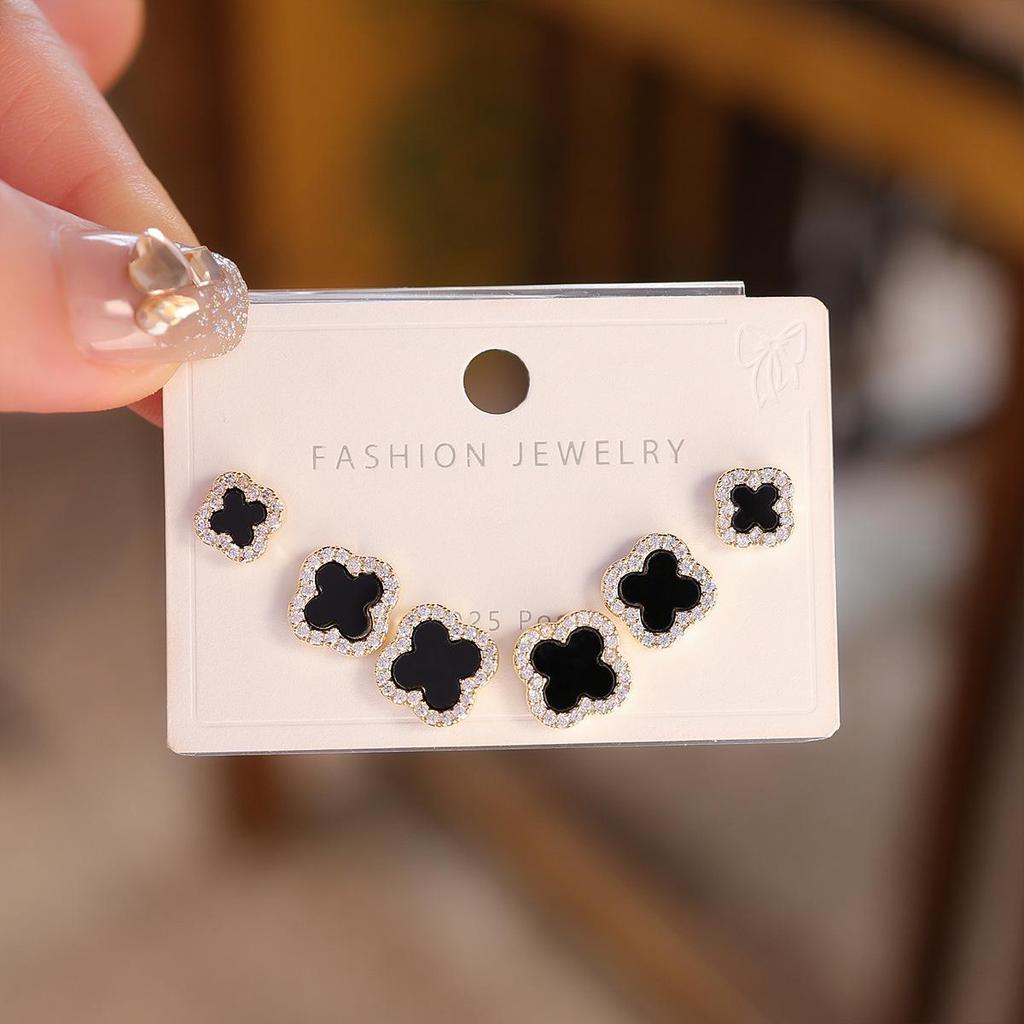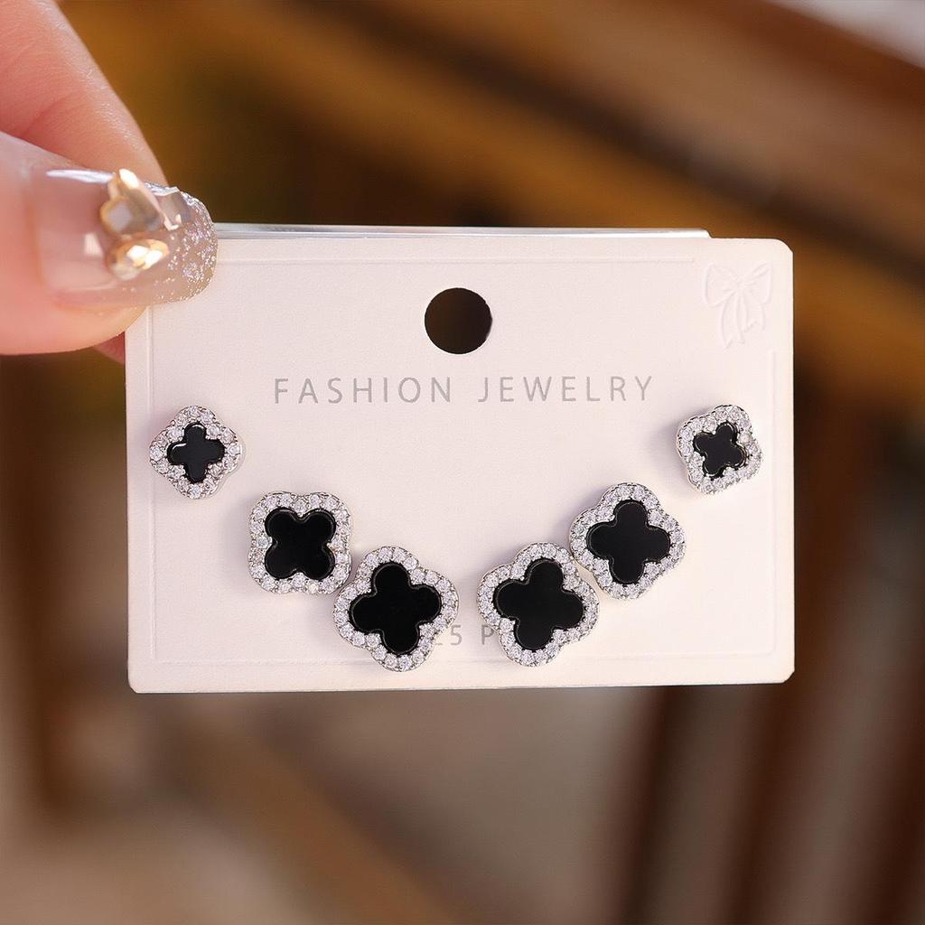 Серьги-пусеты «Четырехлистный клевер» с перламутром и иглой из серебра 925 пробы - Изысканный корейский стиль