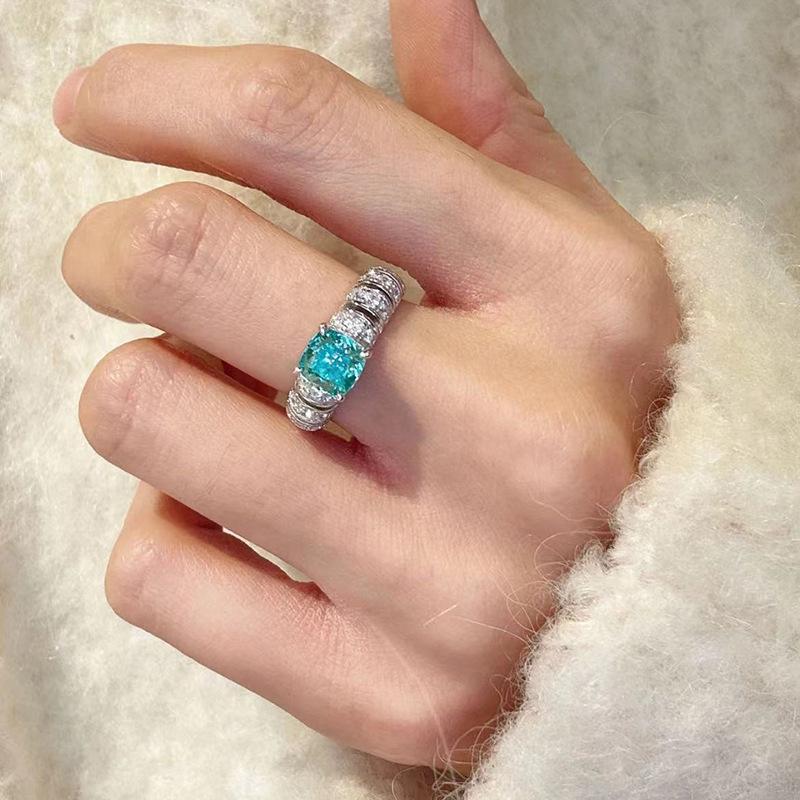 Ювелирные изделия храма Луоси 2024 Серебро S925 с инкрустацией 6*6 мм Параиба Европейско-американское кольцо в стиле легкой роскоши