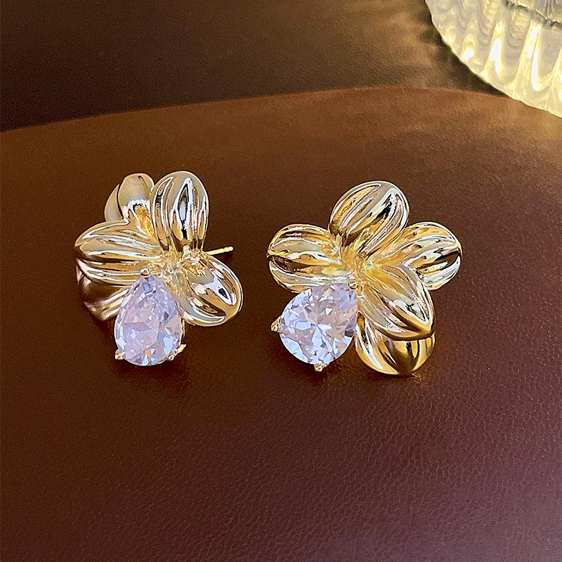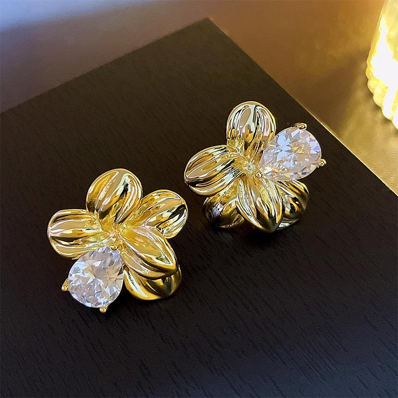 Корейская мода Позолоченные серьги-цветы из стерлингового серебра с цирконами