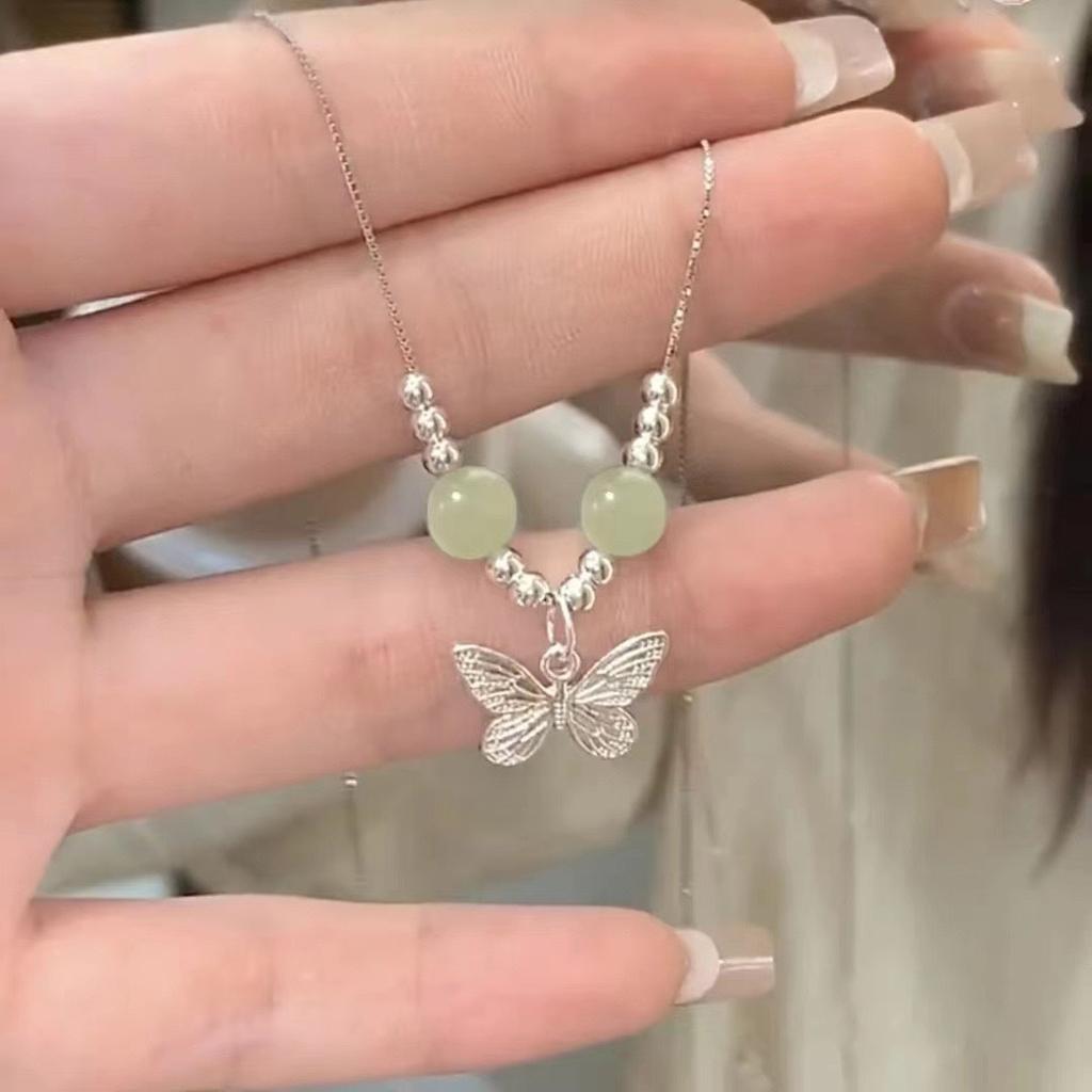 Новогоднее новое китайское имитация нефрита Хотан в виде бабочки для женщин в китайском стиле, легкая роскошная цепочка на ключицу