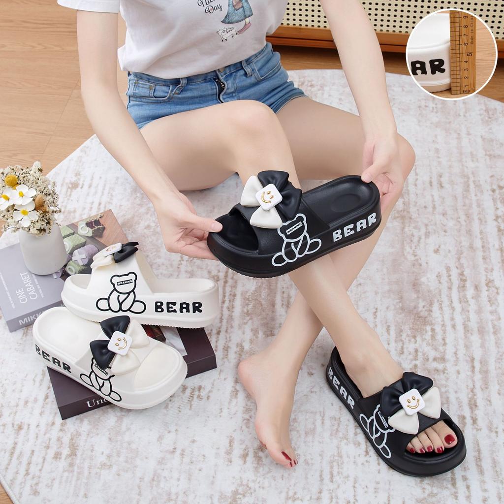 Тапочки женские носят медведь смайлик бант летняя мода толстая подошва см тапочки из одного слова