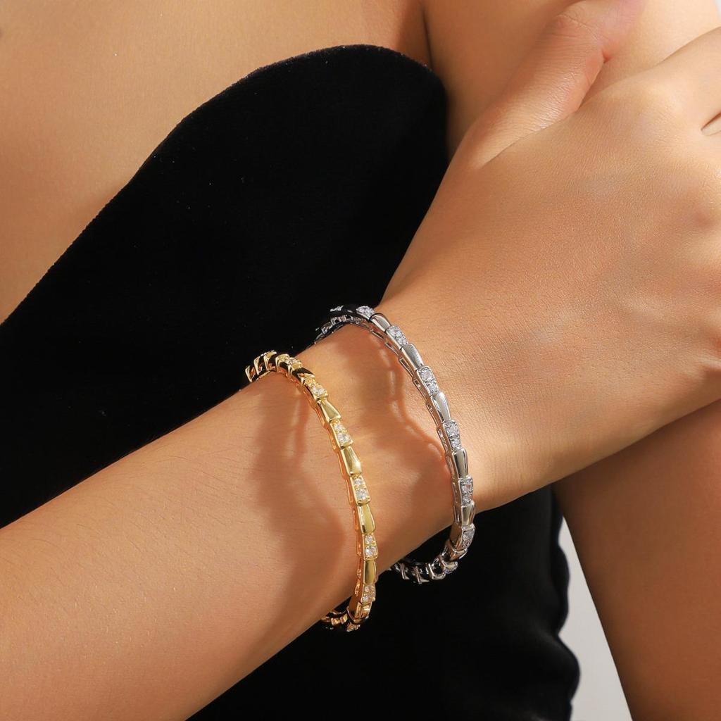 Европейский и американский роскошный браслет-змейка из циркония с золотым покрытием - Высококачественный ретро-стиль для женщин