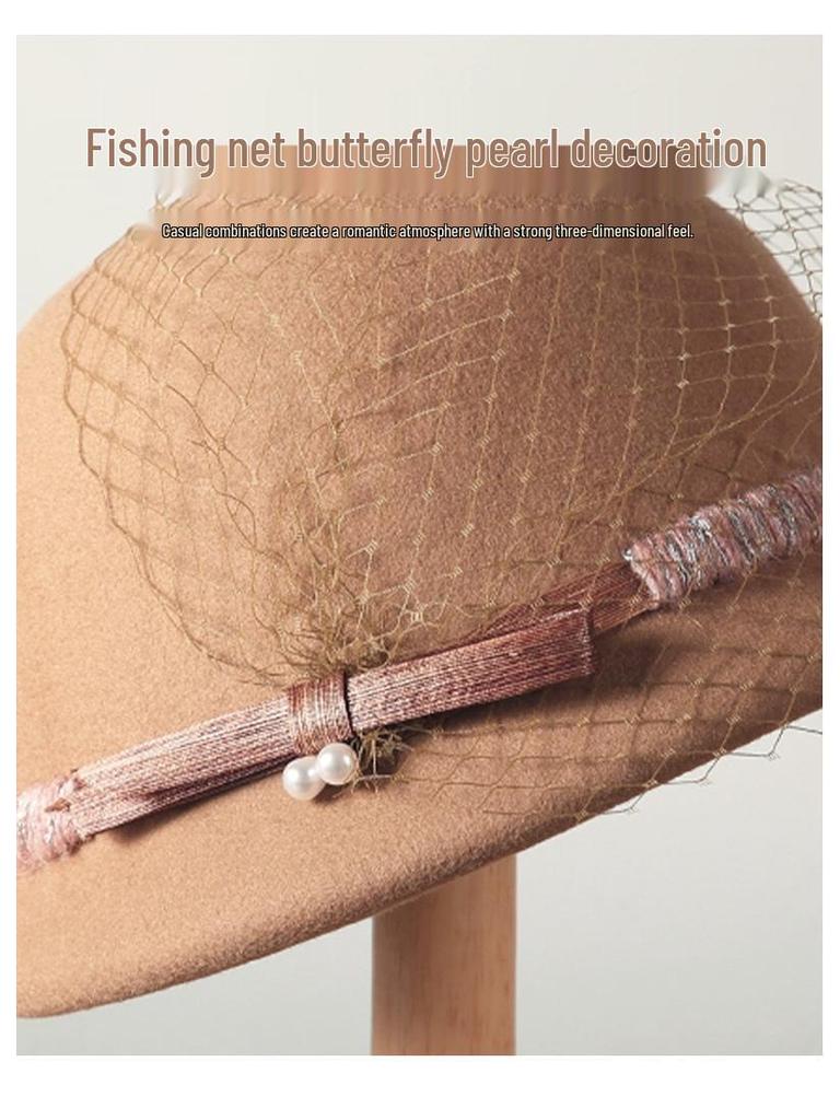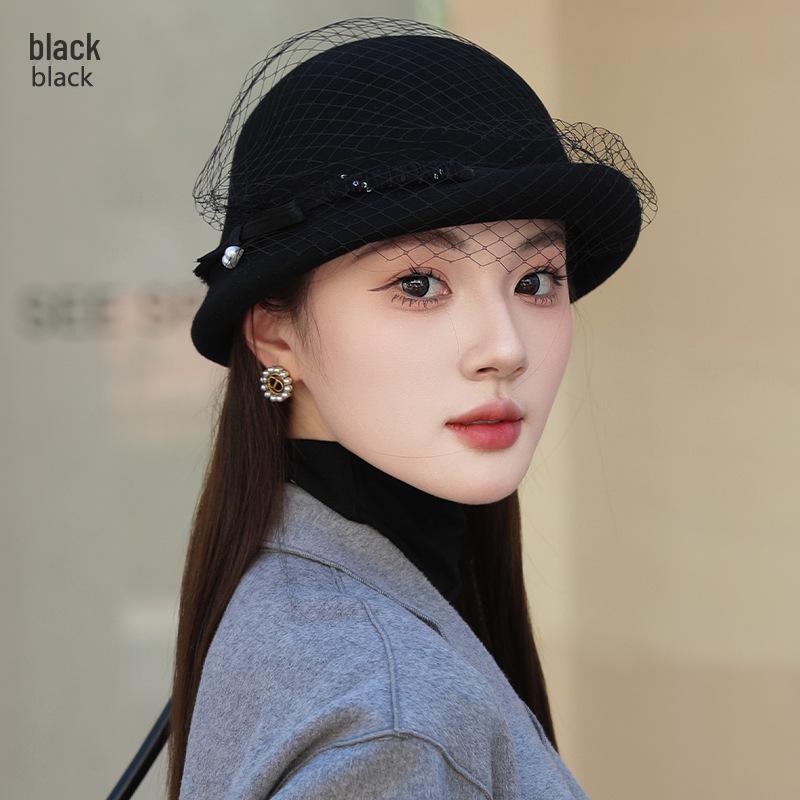 Женский универсальный ретро элегантный куполообразный берет из шерстяного войлока с сетчатой отделкой - Коллекция Осень/Зима 2024