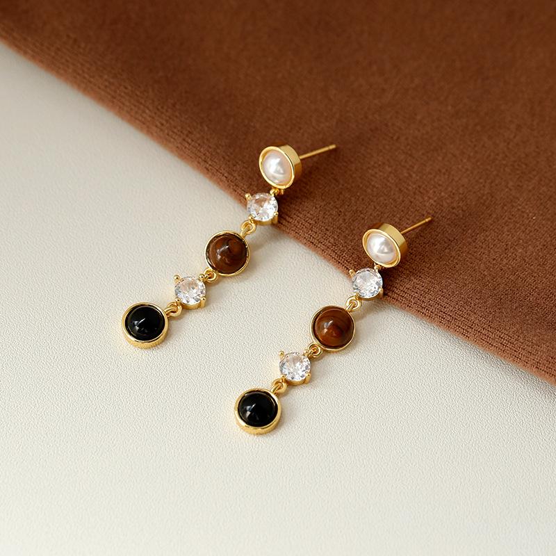 Длинные серьги с жемчугом и тигровым глазом: Новая Высококлассная Осенне-Зимняя Мода для Женщин