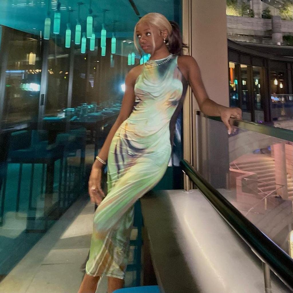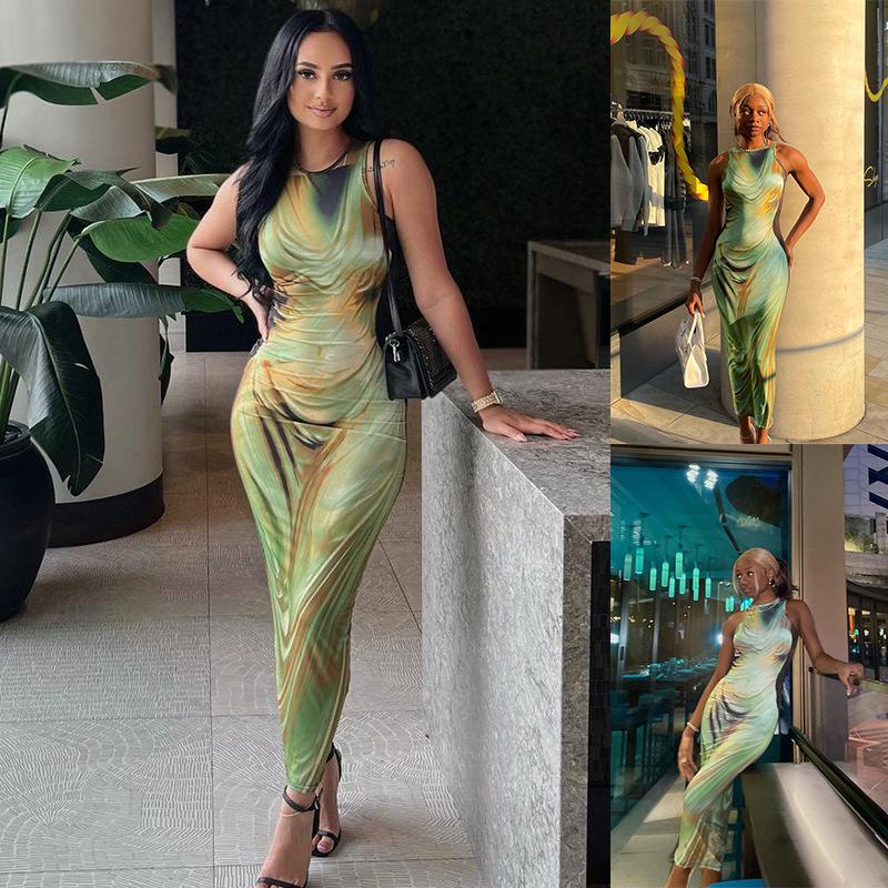 Женское весеннее платье-жилет без рукавов с принтом и круглым вырезом, летнее повседневное облегающее платье-карандаш длиной до щиколотки с высокой талией и разрезом, размеры S-XL