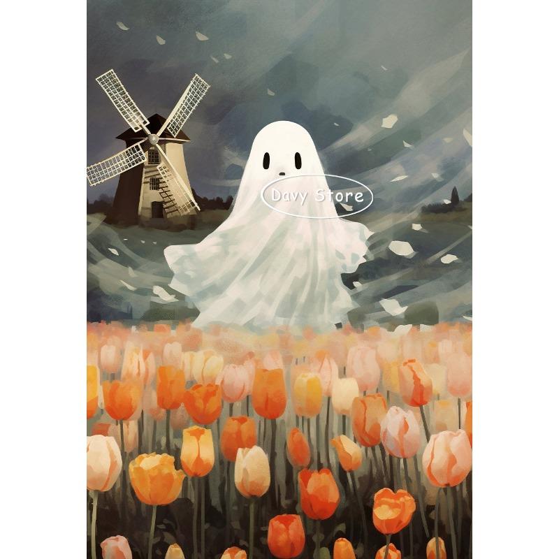 Белый Призрак Каваи Хэллоуин Тыква Настенное Искусство Холст Живопись Белый Призрак Жизнь Постеры Принты Настенная Картина для Комнаты Домашний Декор