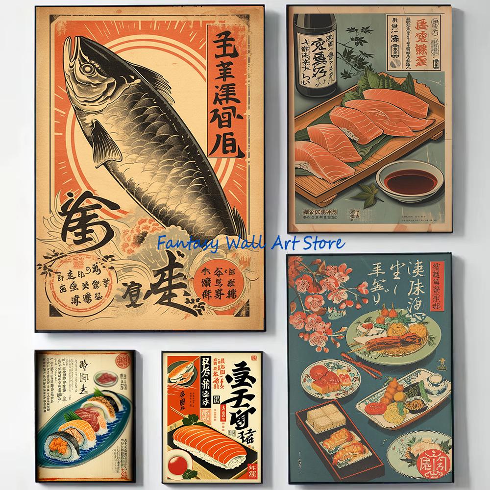 Винтажный стиль Японский Кайсэки Суши Еда Рыба Японский Ресторан Арт Постер Холст Живопись Настенные Картины Домашний Кухонный Декор