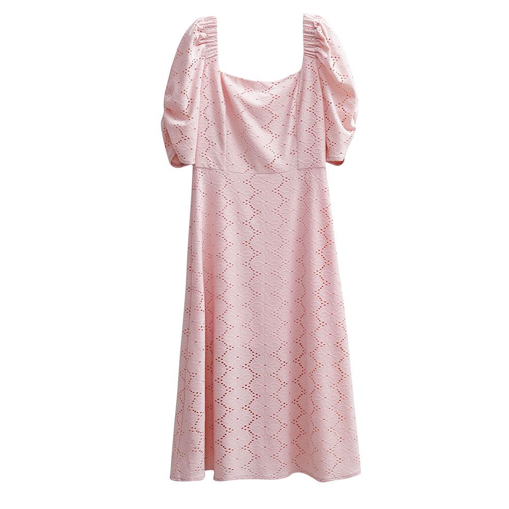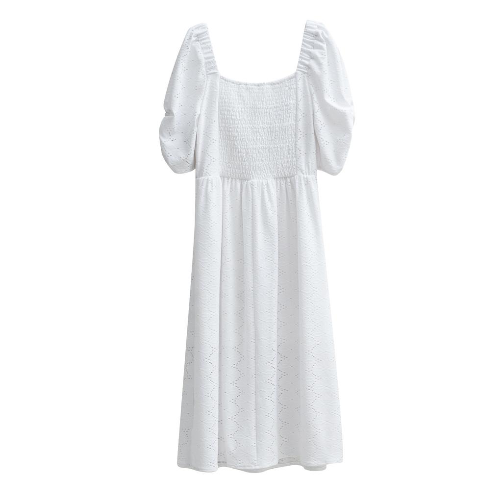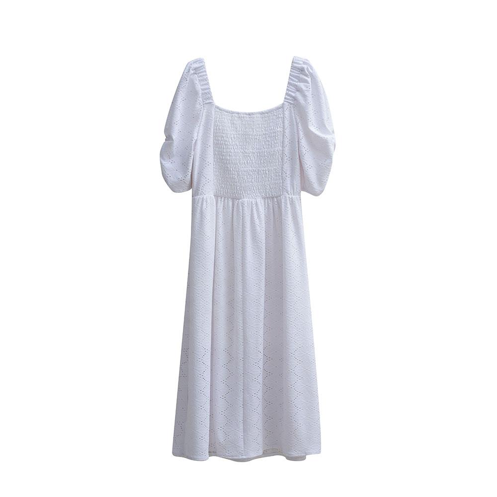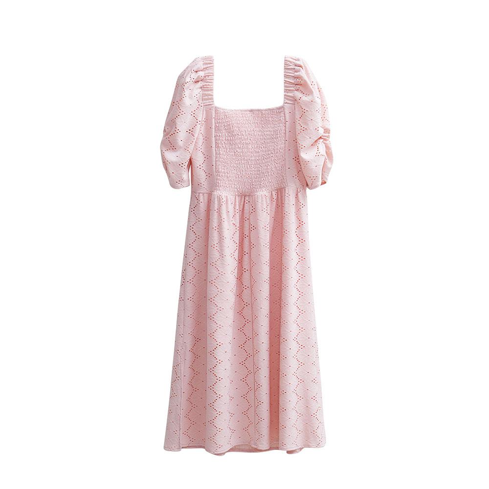 Сплошной цвет с квадратным вырезом женское летнее элегантное длинное платье с коротким рукавом и вырезом